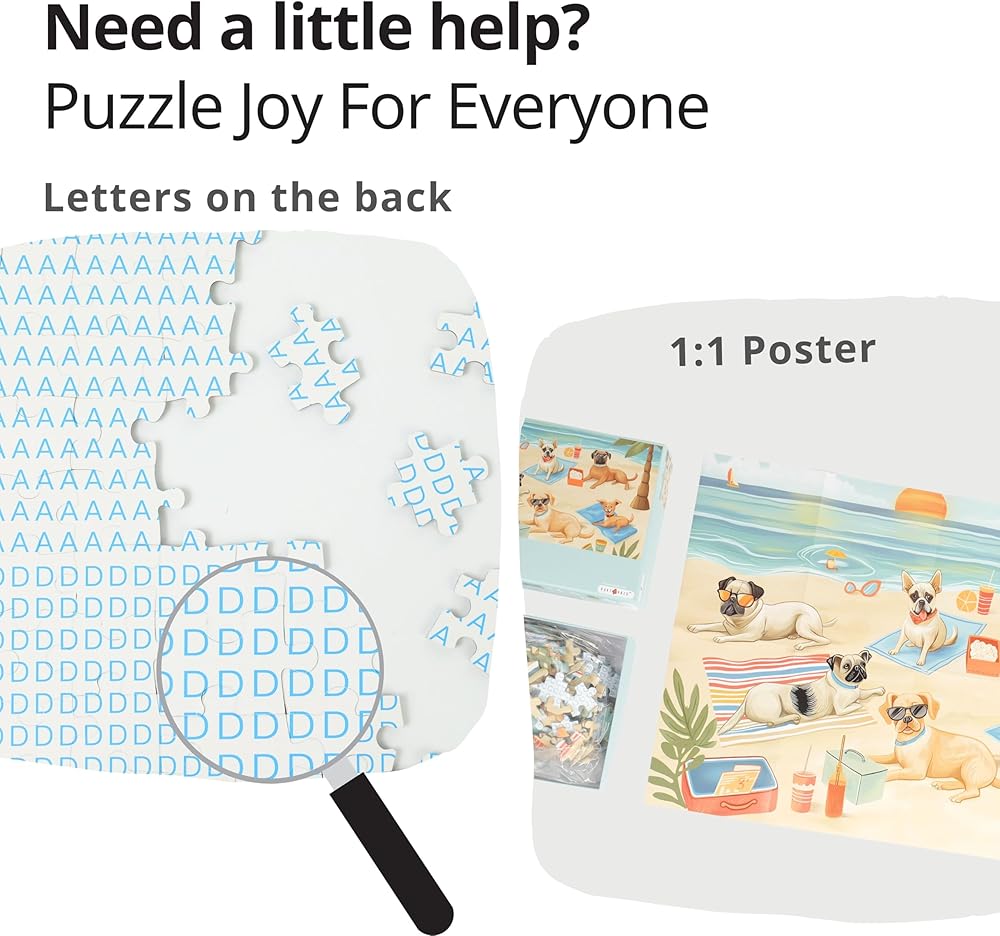 1: 1 ملصق ورسائل على الظهر: يتضمن كل لغز ملصق مرجعي بحجم 1: 1 على ظهر كل قطعة ، مما يتيح لك تصور الصورة المكتملة واختيار مستوى الصعوبة المطلوب لتجربة مصممة خصيصًا.