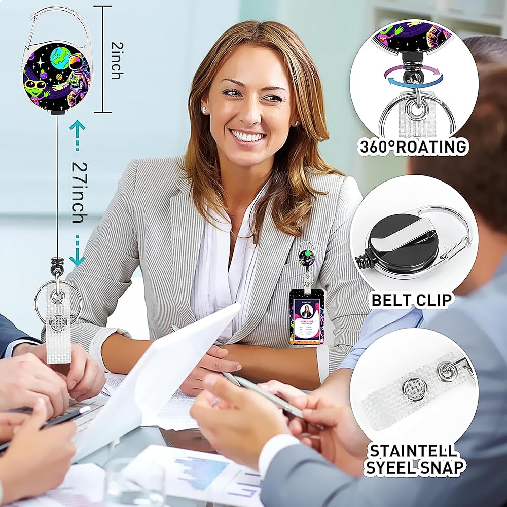 Super Convenient:It is easy to clip on to a belt, backpack, pocket or anywhere you like, with 360° rotating carabiner clip. The retractable reel can be stretched up to 25 inches, so you can scan your card or open a door without bending down