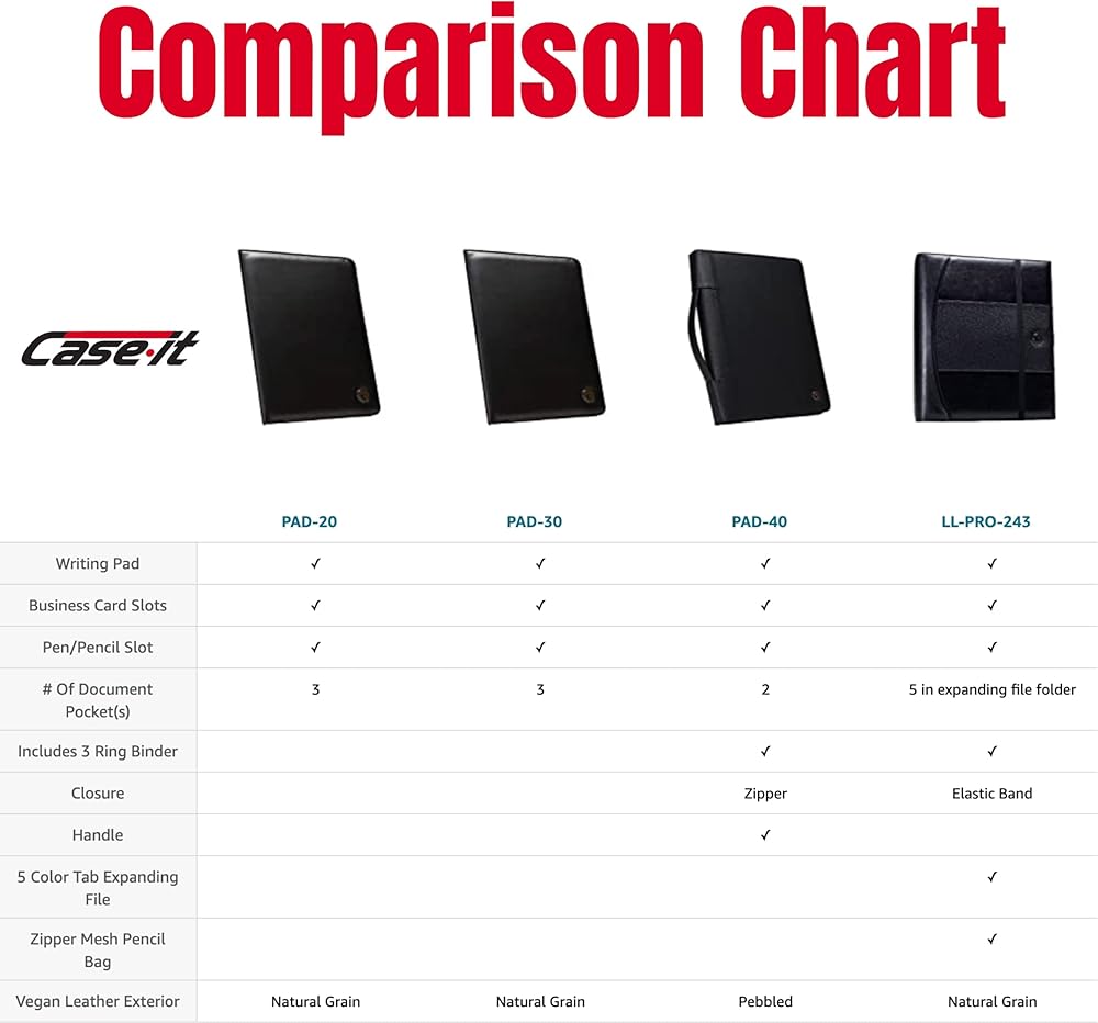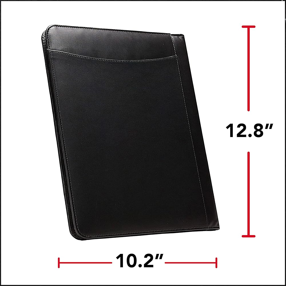 PADFOLIO 3-RING BINDER FEATURES: This padfolio binder has a 3 ring binder with 1-inch D-rings built-in; 5-tab expanding file folder; a durable faux leather exterior; an elastic strap closure keeps contents secure; interior zipper pocket that holds pens, business cards, usb thumb drives , and more!