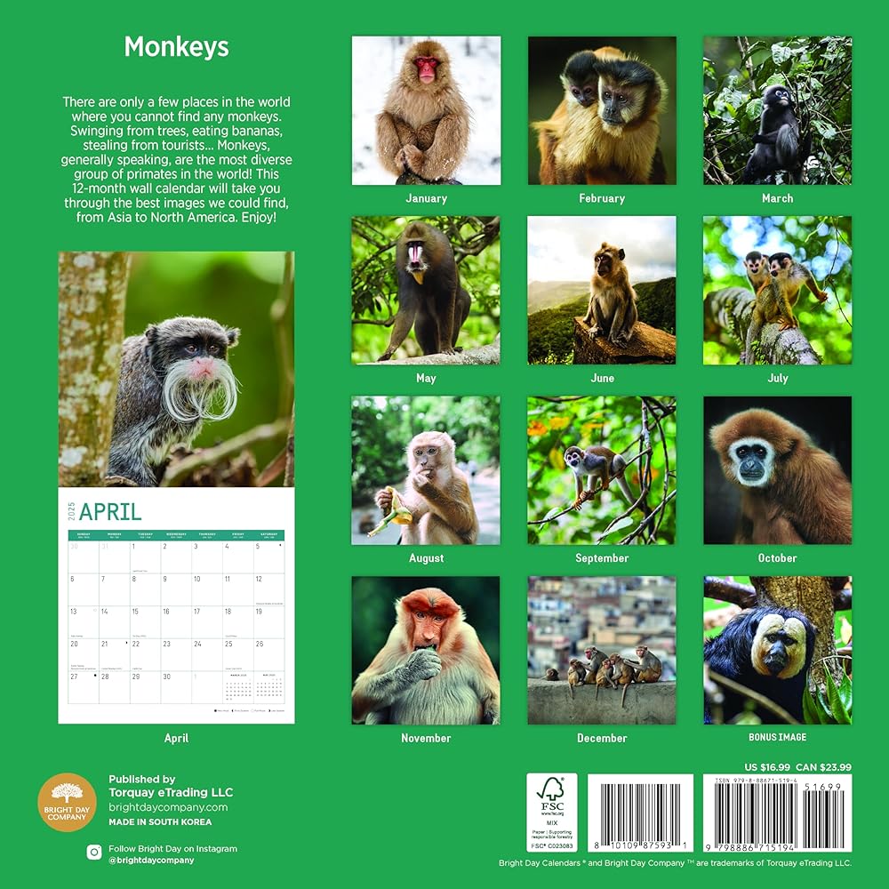 2025 12 Month Calendar - There are only a few places in the world where you cannot find any monkeys. Swinging from trees, eating bananas, stealing from tourists... Monkeys, generally speaking, are the most diverse group of primates in the world! This 12-month wall calendar will take you through the best images we could find, from Asia to North America. Enjoy!