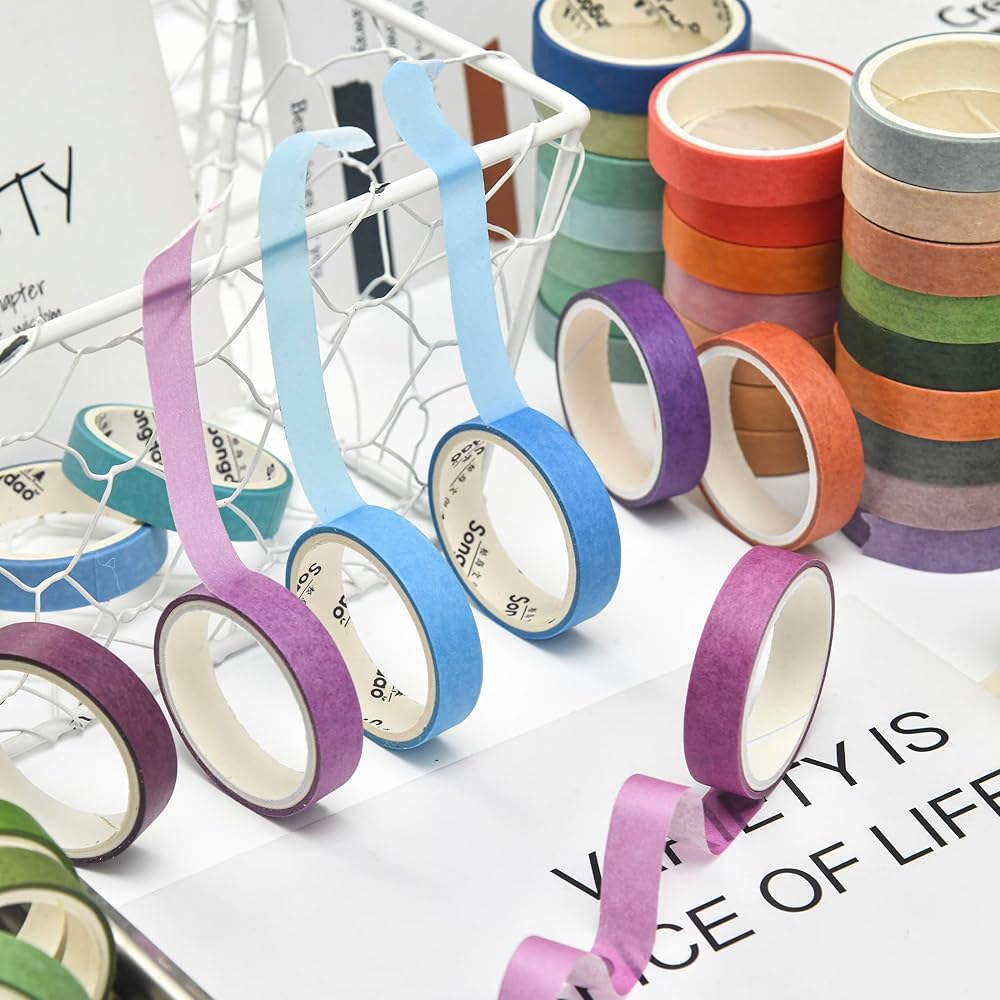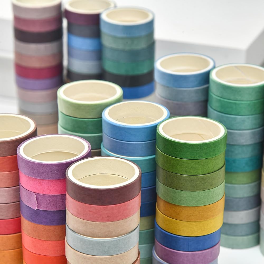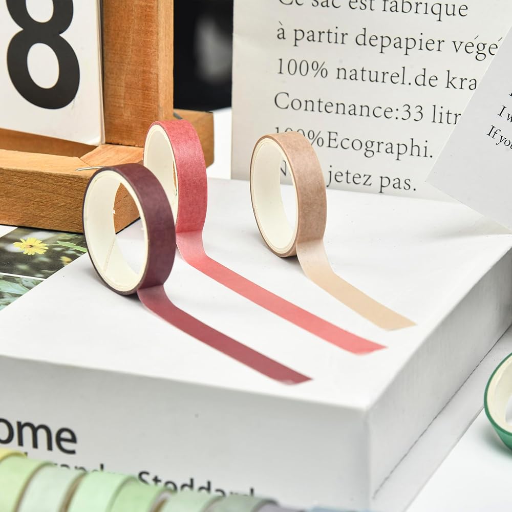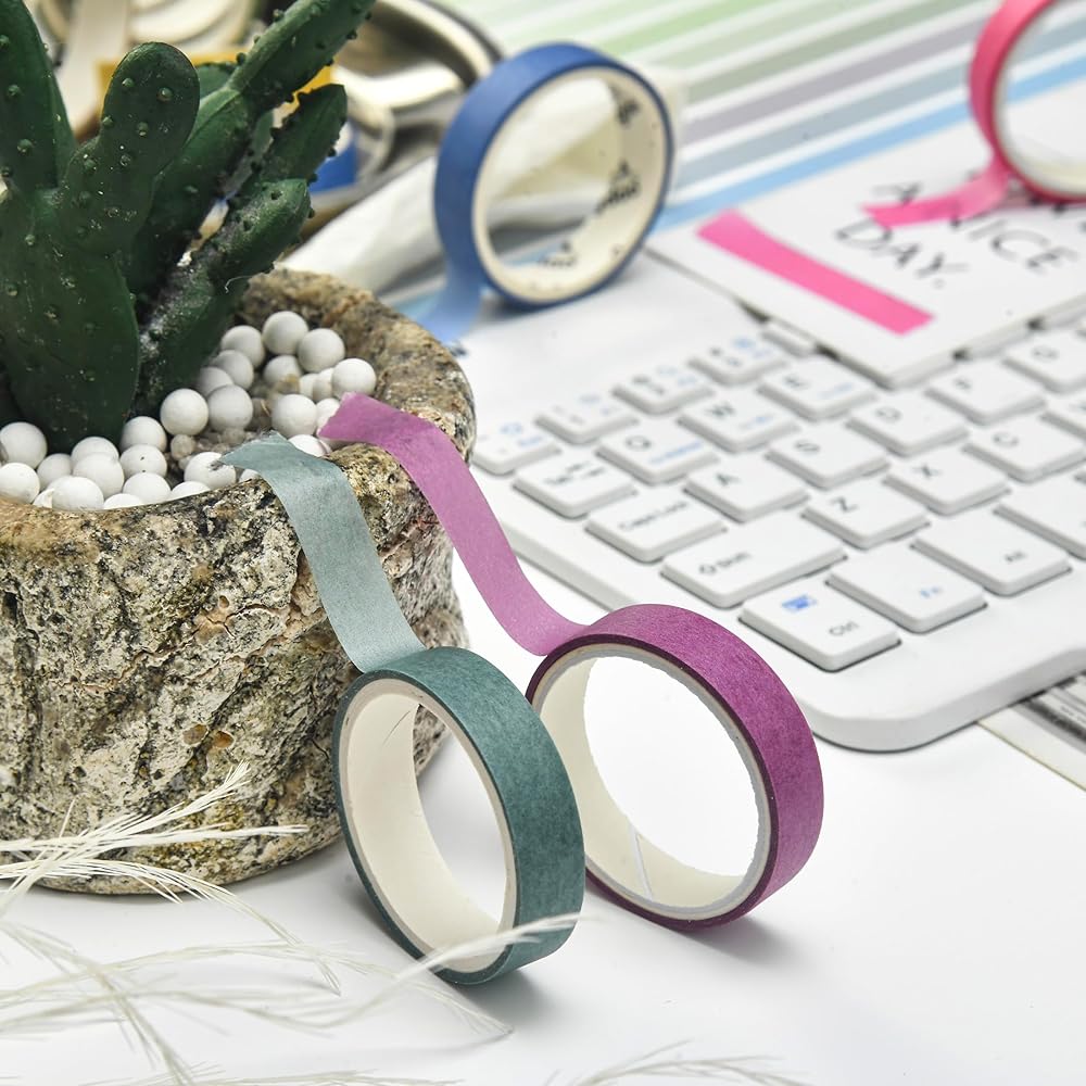 👍【GOOD STICKING & TRPATIABLE】These washi tapes will NOT damage your art works. It can torn easily by hand and sticky on clean surfaces, such as wood, paper, wall, glass, vinyl, plastic, leather, metal and laminate and so on