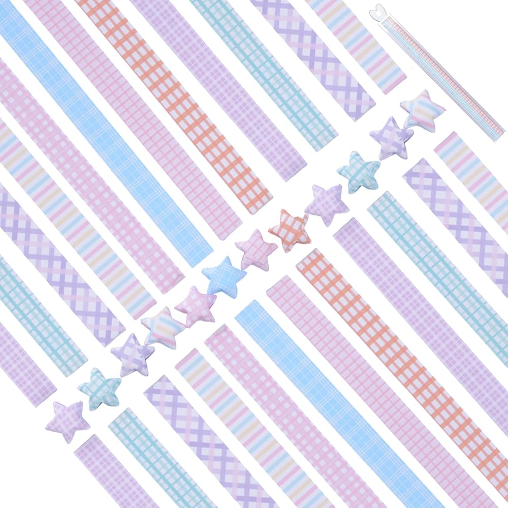 【PACKAGE INCLUDE】: The package comes with 640 pcs origami star paper strips, Various striped or checkered patterns. The large quantity can meet your decoration needs.