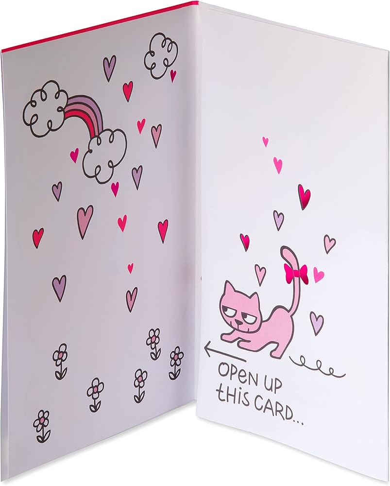 Make her Valentine's Day magical! This Valentine's Day card for Daughter features a cute unicorn soaring across a pink sky with sparkling glitter embellishments. For an extra-fun activity, the card unfolds into a large and colorful poster she can decorate with included stickers. It's sure to fill her day with smiles and lots of love. Share Valentine's Day cards by American Greetings and make every heart happy!