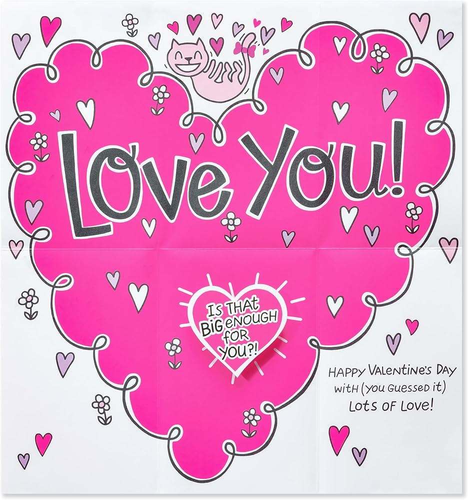 American Greetings Valentine's Day card measures 5.375 in. x 8.25 in. Red envelope included and standard postage required.