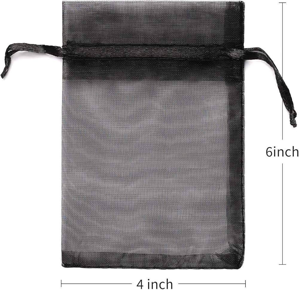 Akstore 100PCS 4x6inch (10x15cm) Drawstring Organza Jewelry Favor Pouches Wedding Party Festival Gift Bags Candy Bags (Black)