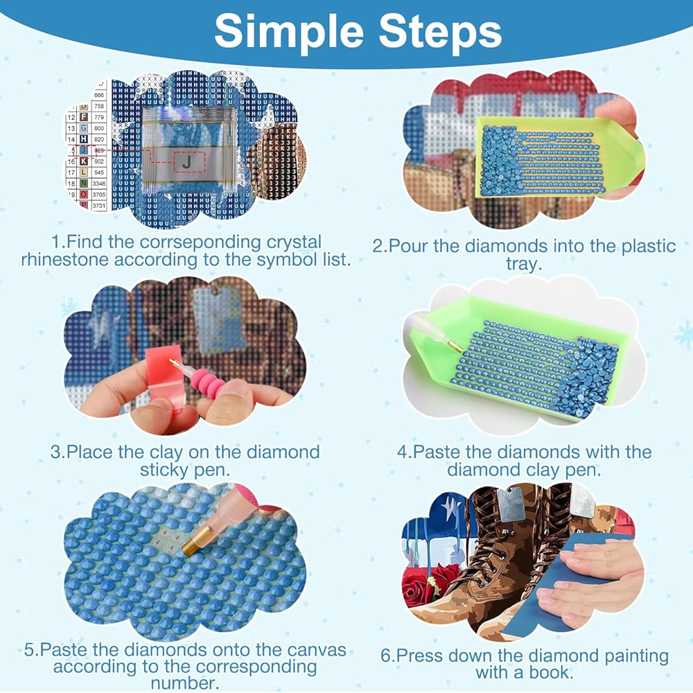 • diamond art Kits:Round diamonds full drill of the whole picture, each diamond is colorful and sparkling. If you have enough time and patience to complete this challenge, you will get a sense of accomplishment.Each diamond art toolkit contains a set of tools for making drawings, so there is no need to purchase any other toolkits.