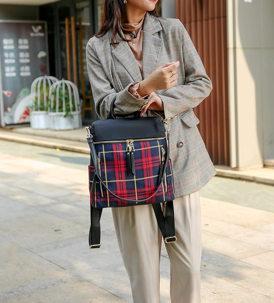With dimensions of 11.5 inches in length, 11.5 inches in height, and 5 inches in depth, this backpack strikes the perfect balance between compactness and spaciousness. The flat handle drop of 4 inches provides a comfortable grip, while the adjustable shoulder straps extend to 40 inches, allowing for a customized fit that suits your style. Elevate your urban look with the MKF Collection Nishi Plaid Backpack, where fashion meets function in perfect harmony.