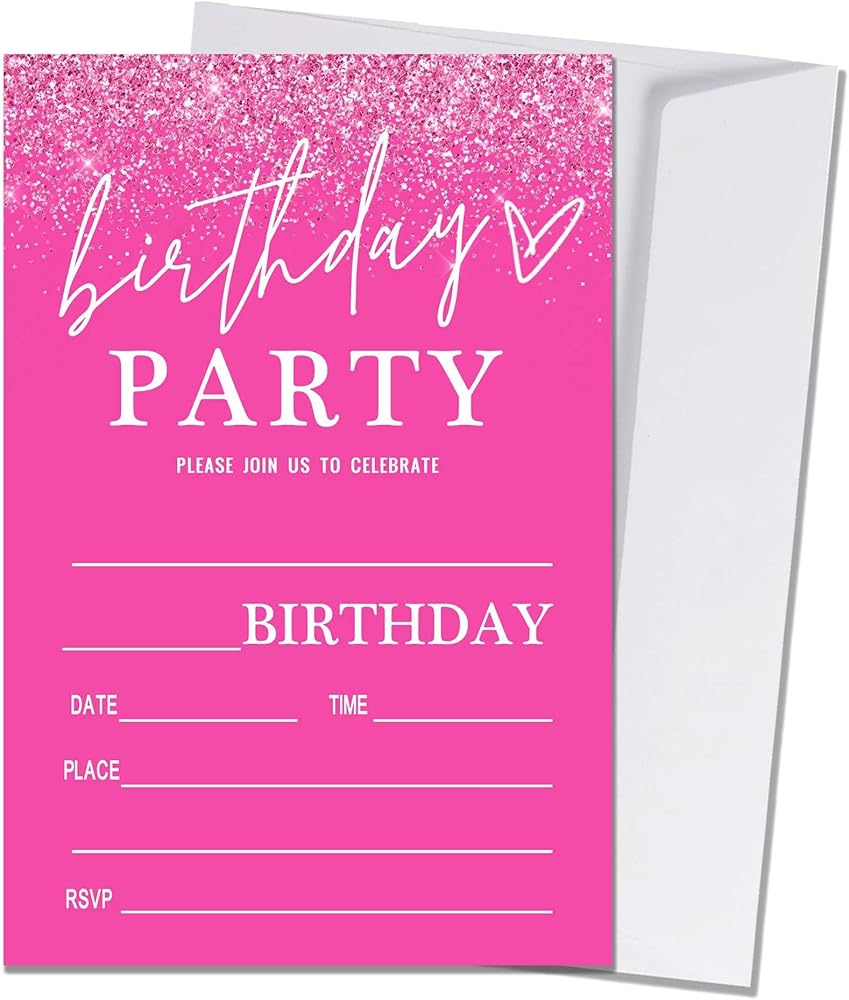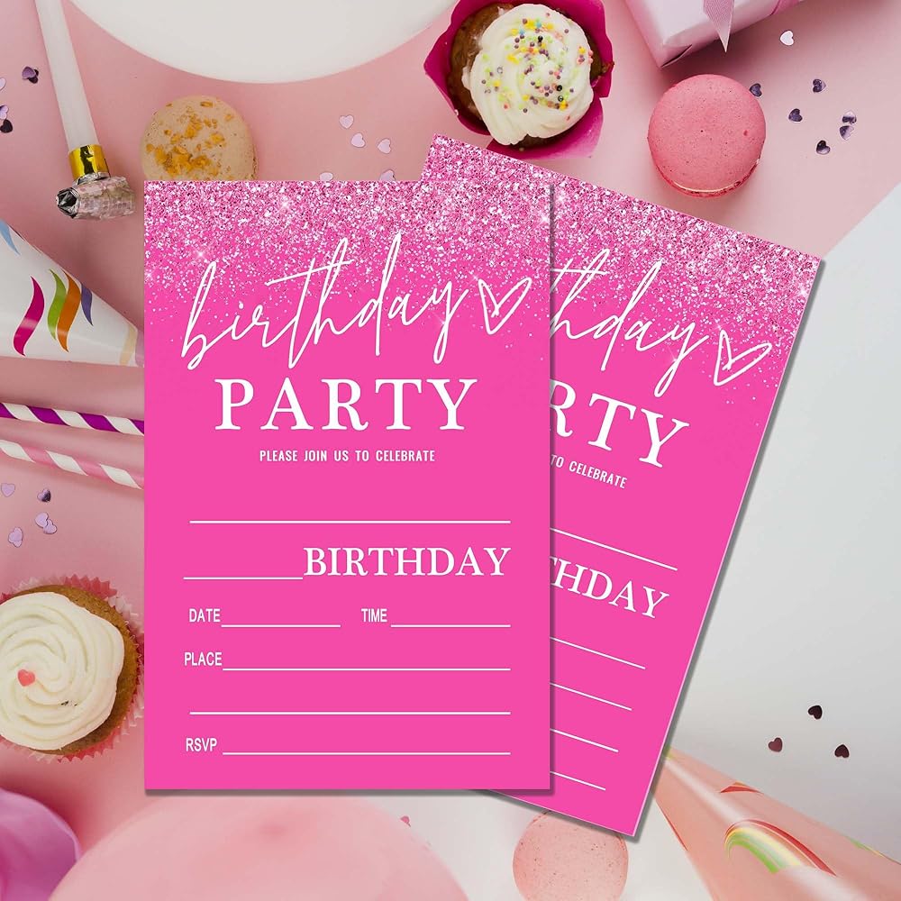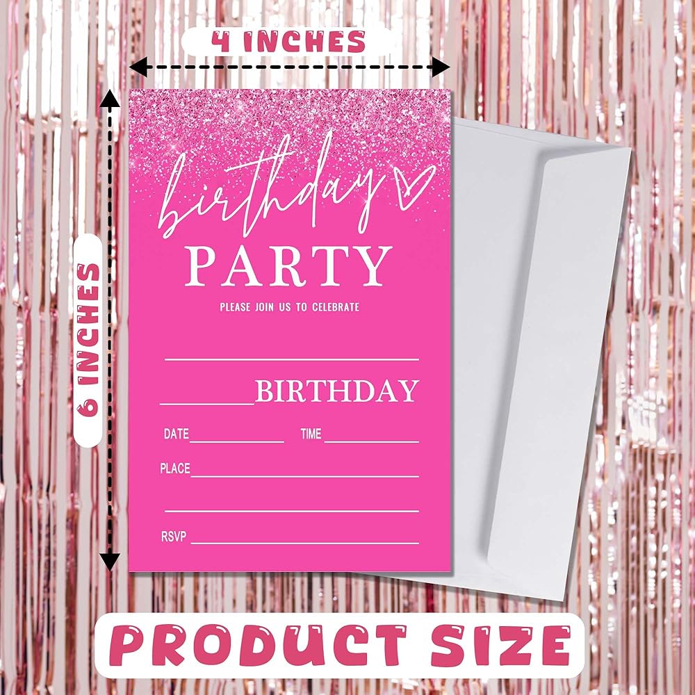 Pink Birthday Party Invitations for Girls Pink Silver Invite Birthday Party Invite for Girls Besties Woman 20 Invite Cards with Envelopes-Birthday Party Supplies(4×6inches)-C03
