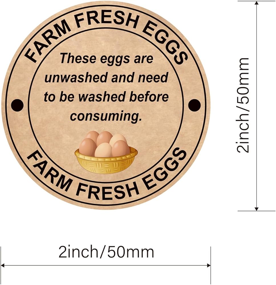 2 inch 300pcs Unwashed Farm Fresh Egg Sticker for Carton Market Shipping