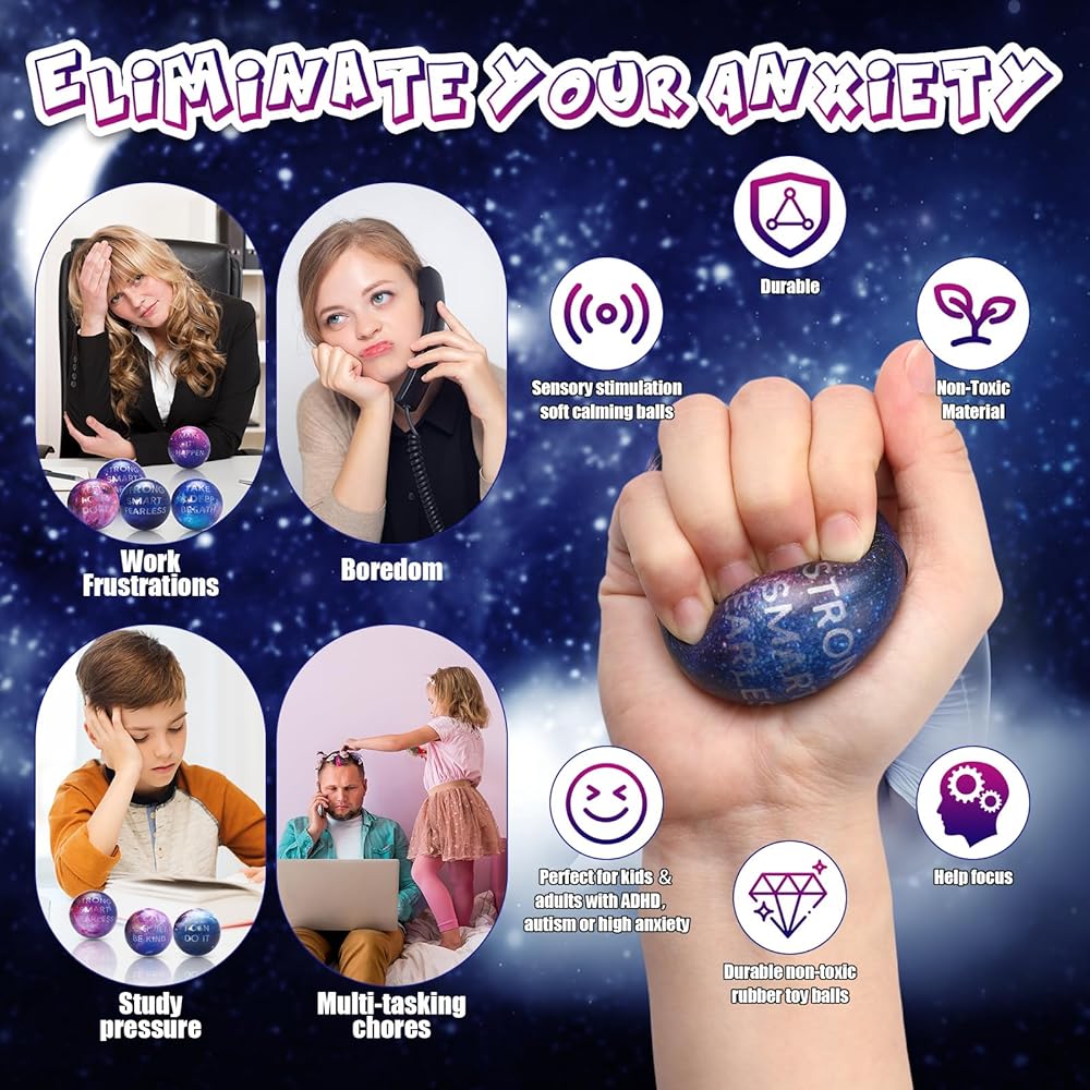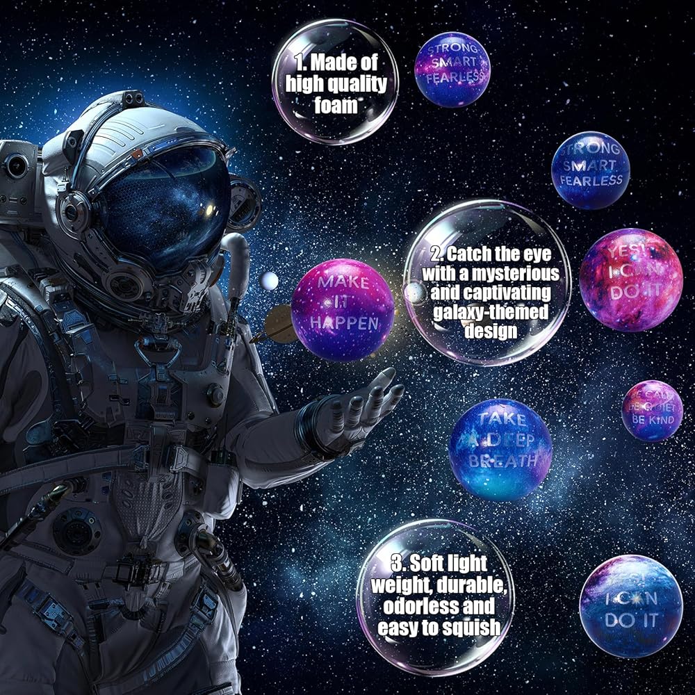 Quality Pu Material: made with quality PU material, these space themed stress balls are soft, sturdy, and comfortable to squeeze; They provide subtle resistance and are nice for helping to relieve stress, anxiety, and tension