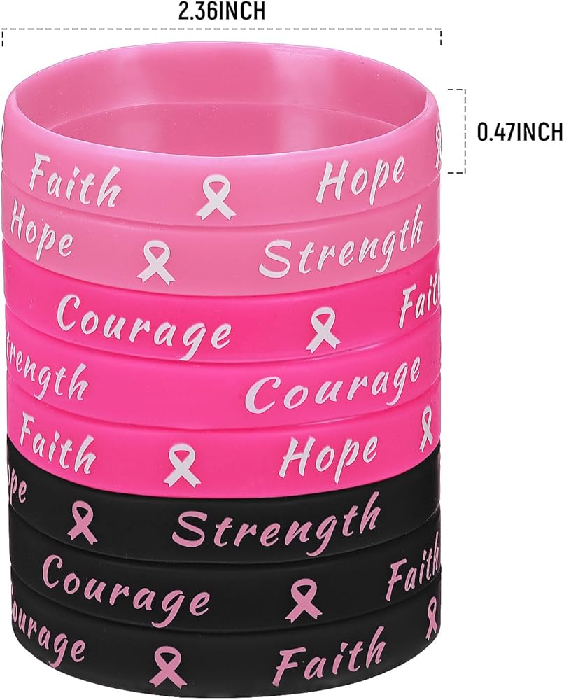 Classic Design with Powerful Message: each of these breast cancer bracelets is imprinted with encouraging and inspiring words including [hope], [faith], [strength] and [courage]; The classic design and powerful messaging make these bracelets not just nice accessories, but also symbols of unity and support