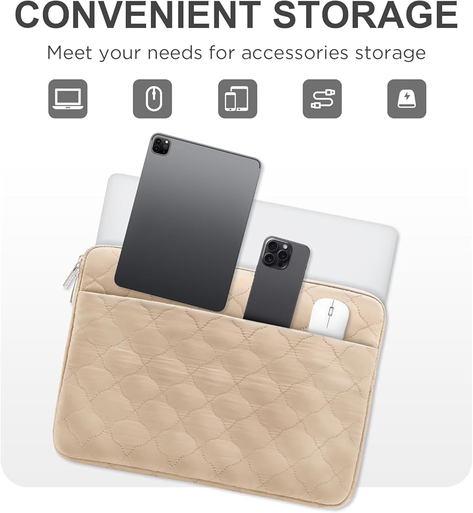 【Extra Front Pocket】This laptop comes with an external pocket on its sleeve, which has enough space to store your mouse, cable, phone, memory card, external hard drive, pen, and more. The zipper slides smoothly, making it easy to access the laptop
