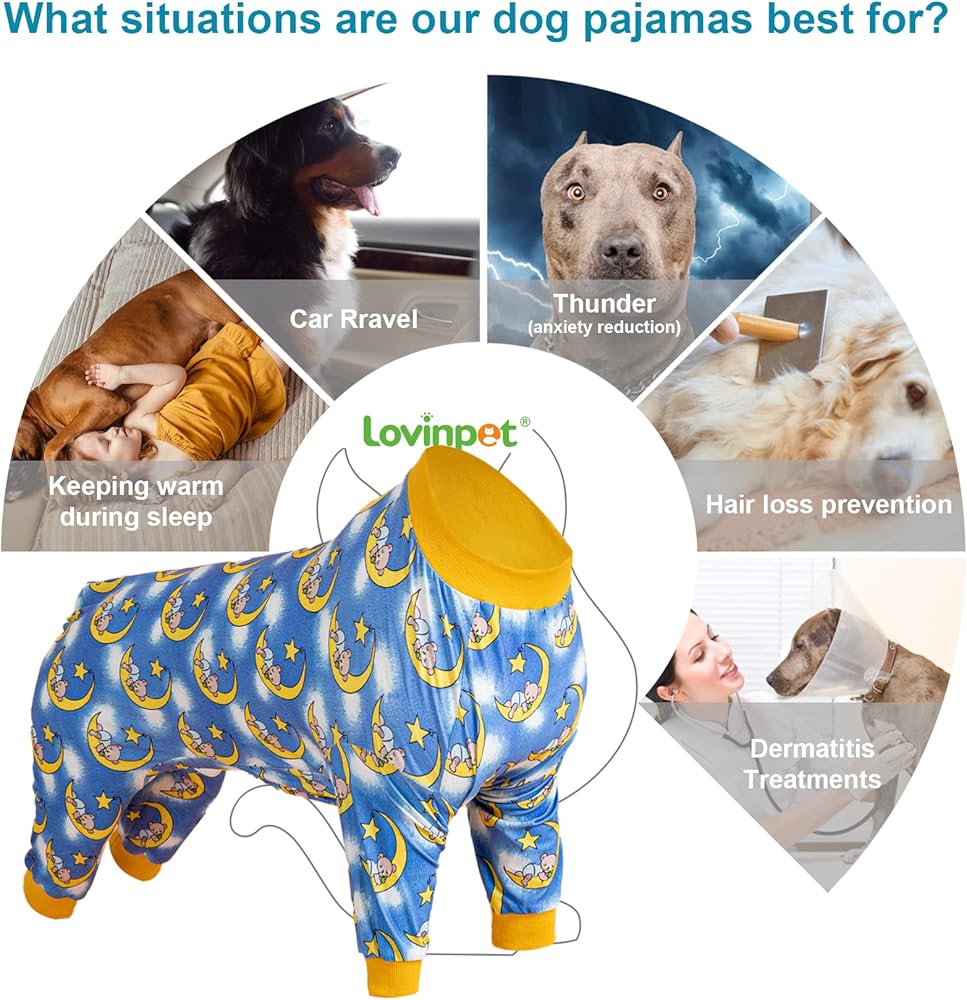 LovinPet Pitbull Dog Pajamas - Pet Anxiety Relief, Sun Protection Dog Pajamas, Comfy Stretchy Fabric, Pitbull Onesie, Dreamy Bear Print, Pitbull Shirt, Pet Jammies,Yellow L