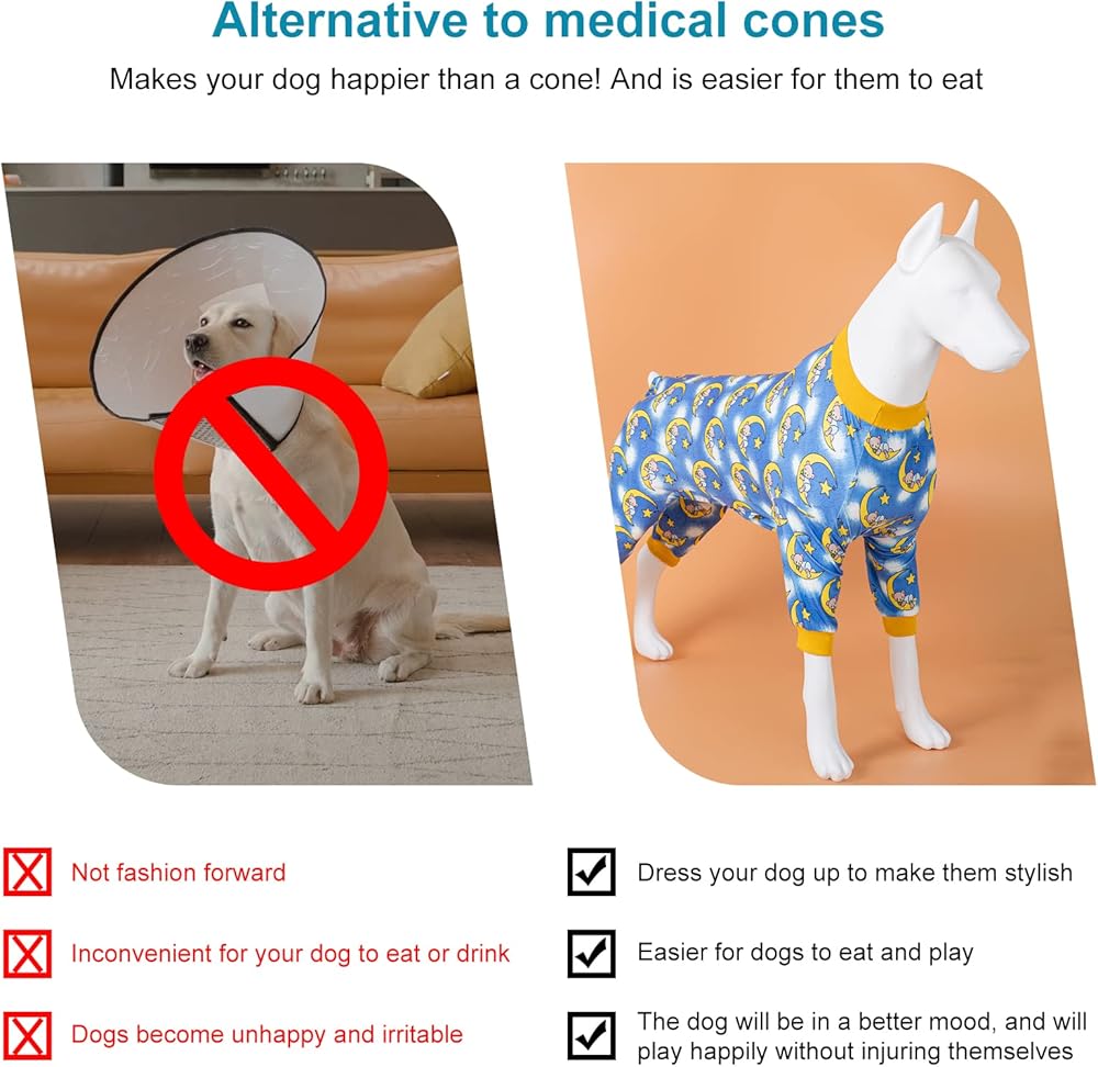 【Helper for Dogs to Recovery】Our dog onesie alternatives to recovery suits or dog cones or a combination with large dog cones.Our dogs pajamas allow dogs to move and eat freely,Your puppy will fell homey and won't be annoyed.