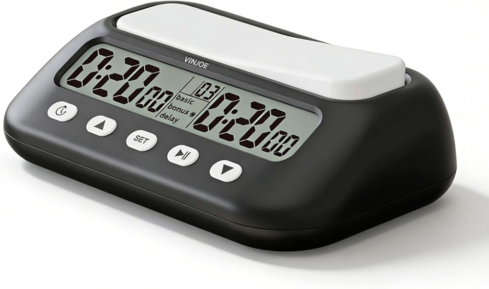 VINJOE Chess Clock Digital Chess Timer Professional for Board Games,Portable Digital Chess Clock & Game Timer with Basic,Bonus,Delay and Positive Time Features Best Gifts for Christmas(Without Battery