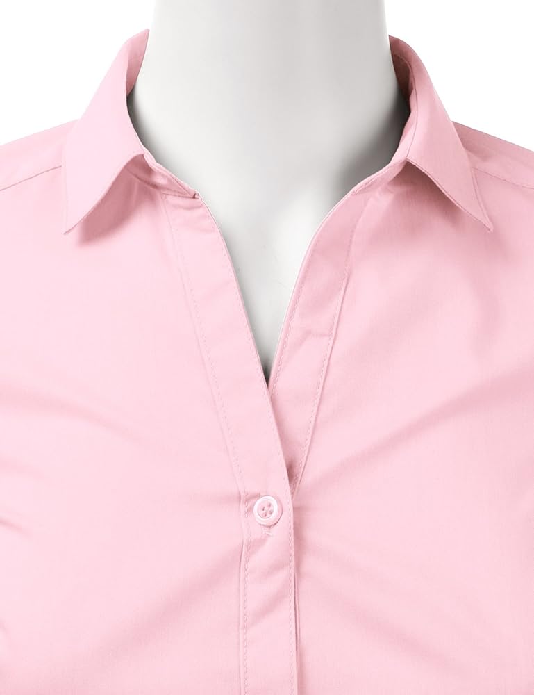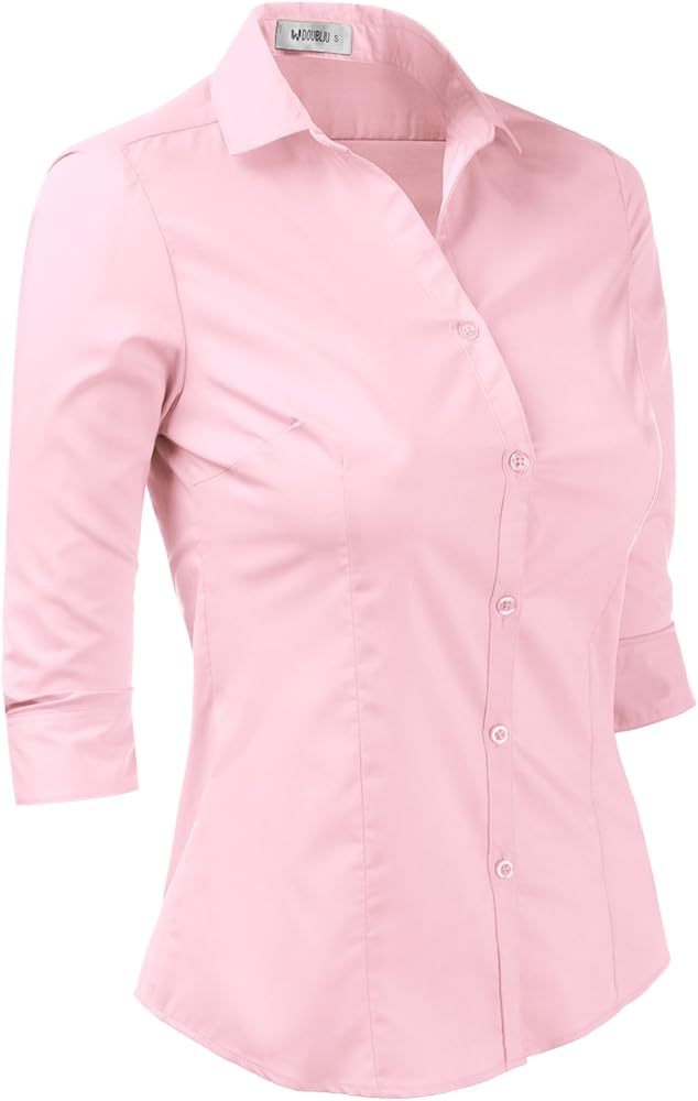 #CWTSTL069 - Womens Basic Slim Fit Stretchy 3/4 Sleeve Button Down Collared Shirt With Plus size