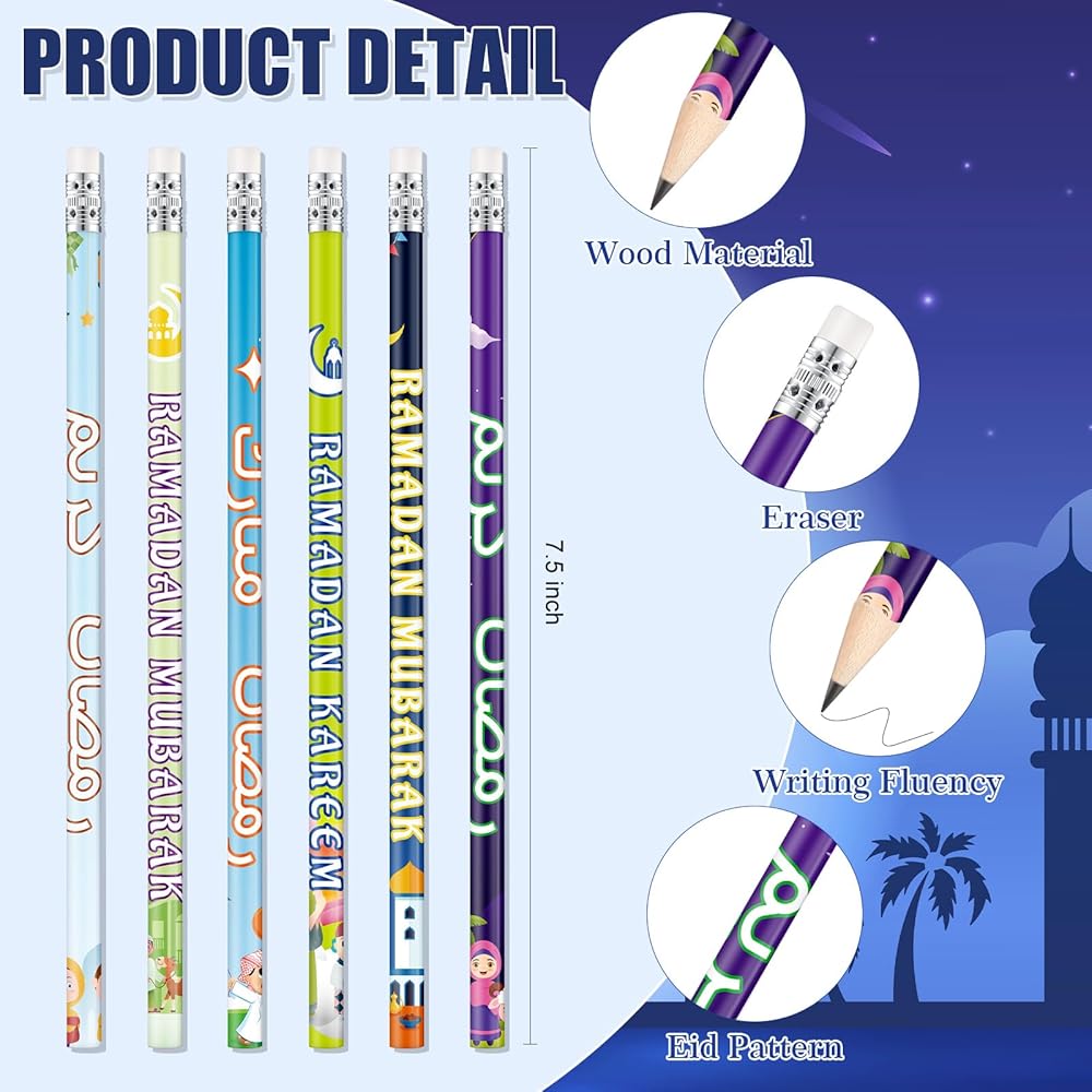 These Eid Mubarak pencils can be applied as learning tools, prizes, teaching awards, etc., and these printed pattern pencils have erasers on the top, so children can easily erase wrongs words.
