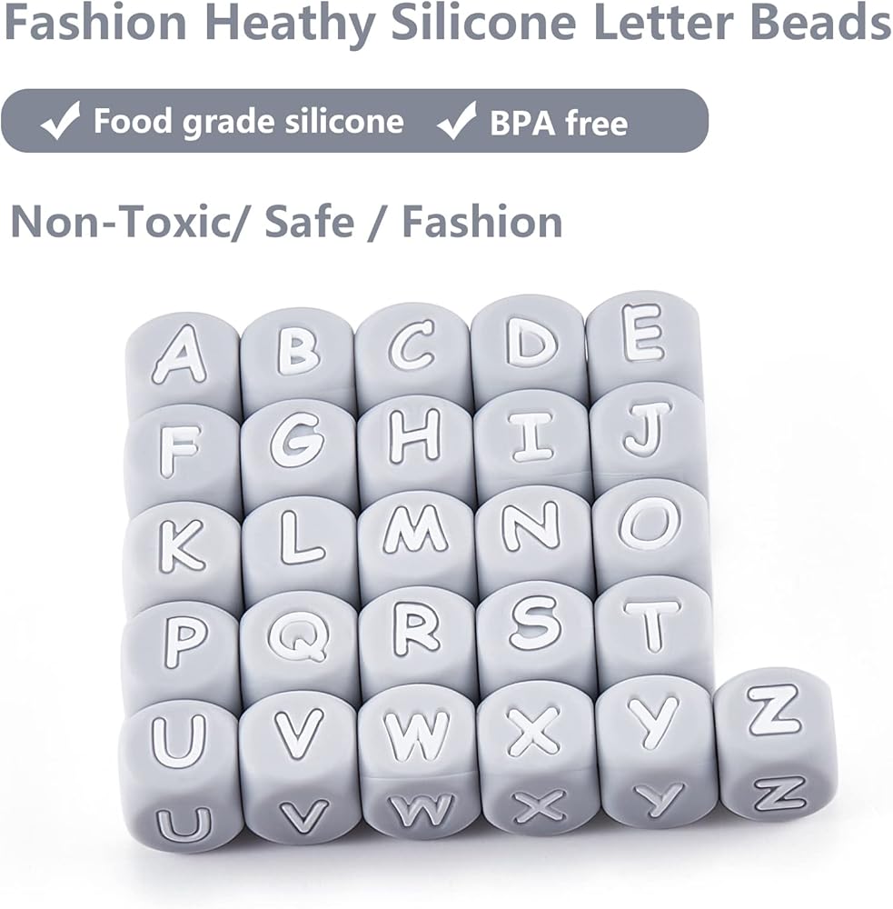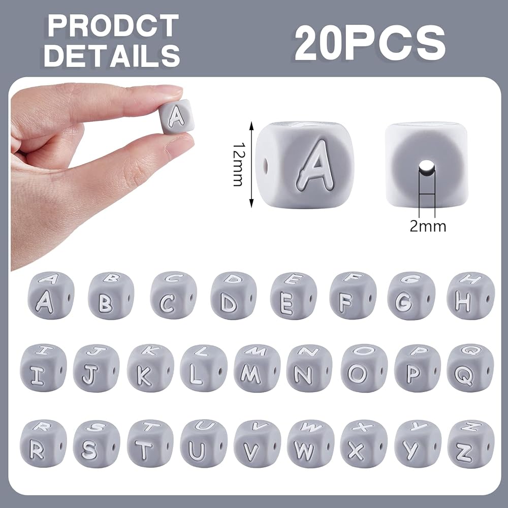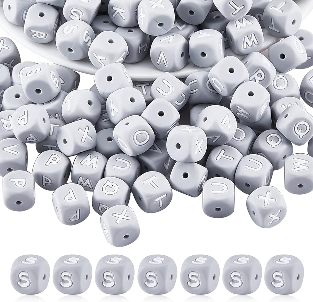 BEEFLYING 20 Pcs Grey Cube Letter S Silicone Beads 12x12x12mm Square Dice Alphabet Beads with 2mm Hole Spacer Loose Letters for Bracelet Necklace Jewelry Making