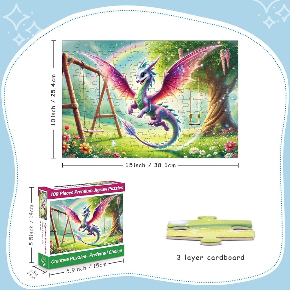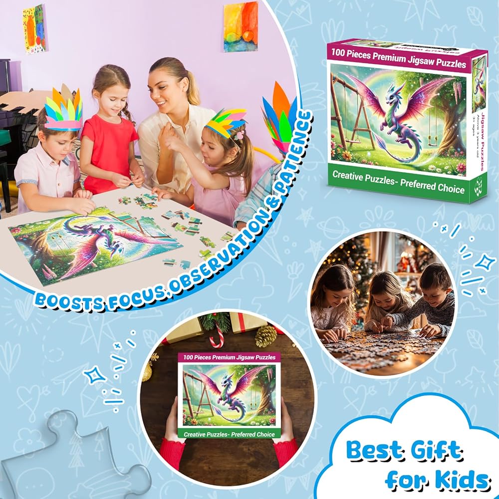 Perfect Gift for Kids--- Looking for a thoughtful gift? This 100-piece Dinosaur puzzle makes an ideal present for birthdays, Christmas, or special occasions. It's perfect for Dinosaur lovers and is sure to captivate children with its colorful design. This puzzle provides hours of fun and helps children develop problem-solving skills, hand-eye coordination, and patience.