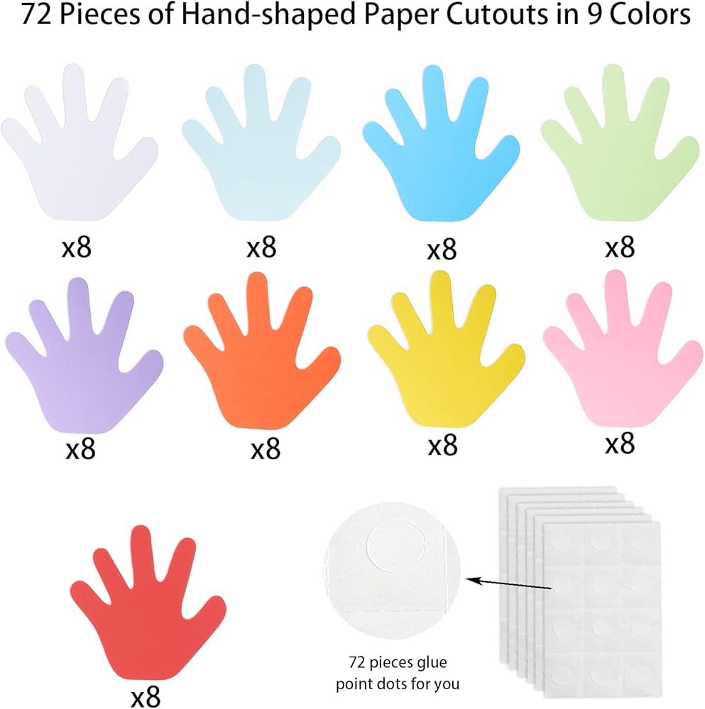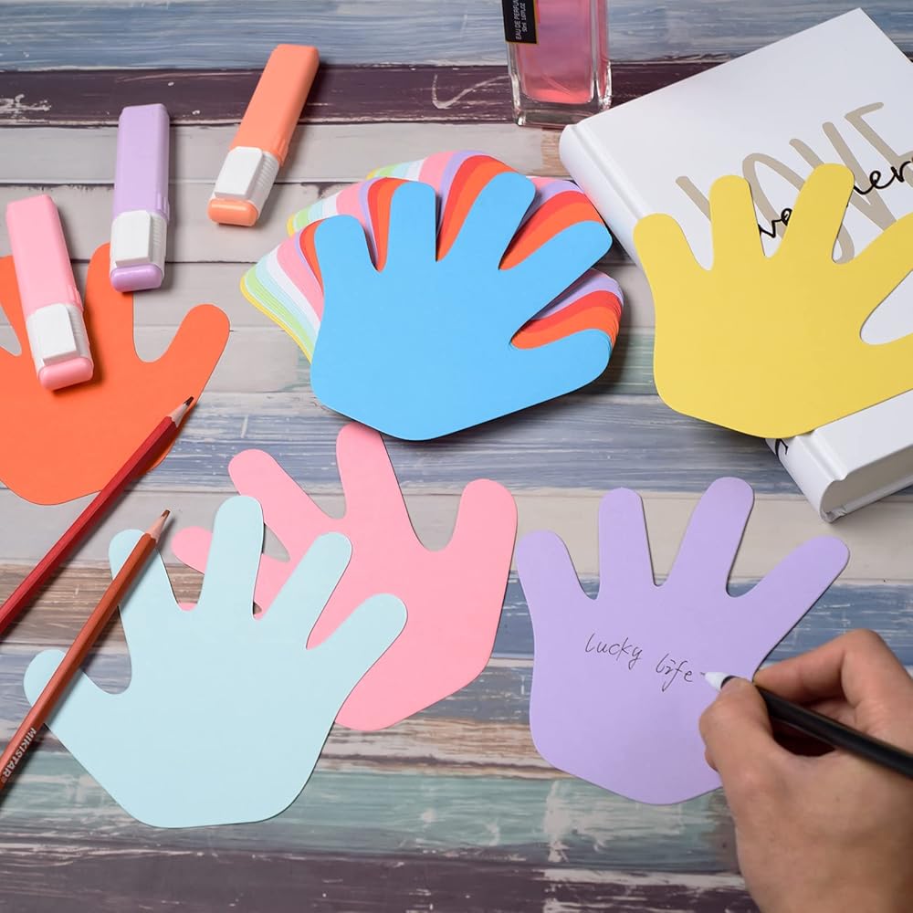 Our paper hand cutout can be used for making cards, name tags, bulletin board decorations, desk tags and others, the ideal craft paper cutout for kids.