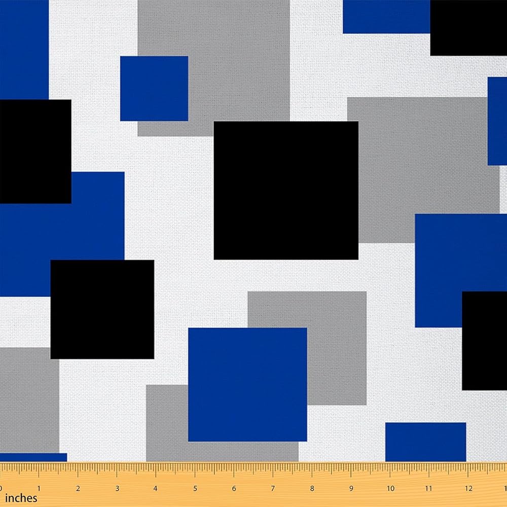 Blue Black White Decorative Fabric by The Yard Geometric Grid Splicing Indoor Outdoor Upholstery Fabric Modern Abstract for Quilting Sewing Arts DIY Craft,1 Yard,36" L x 59" W