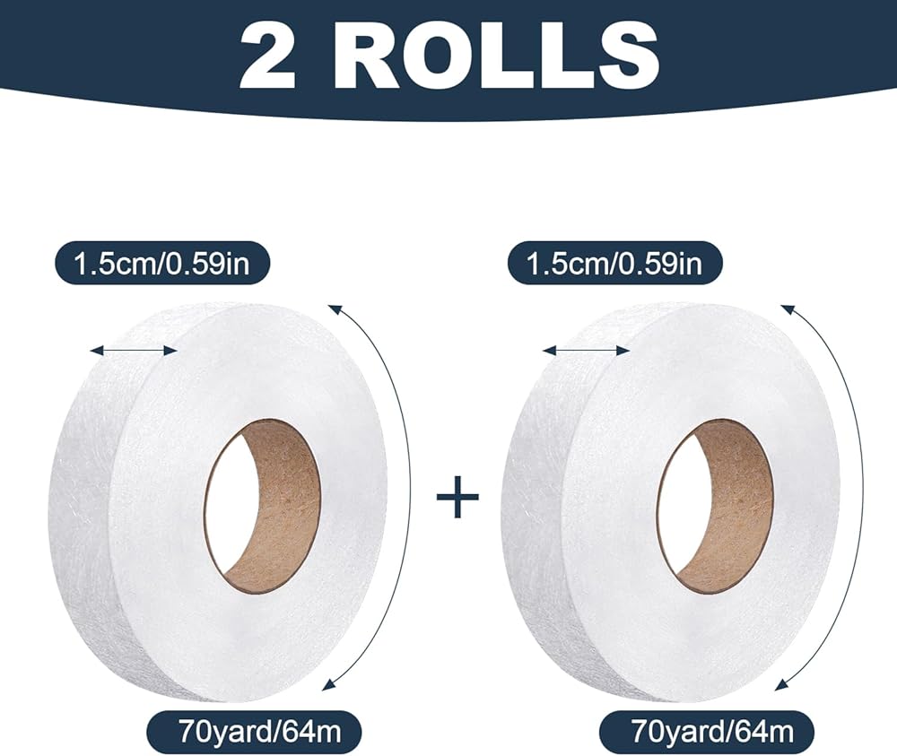 Fabric Fusing Tape: Hem tape width is 0.6inch, length is 70 yards, 2 rolls of hem iron-on tape, good for hems, no sew pillow cases, double backing ribbons, curtains,also suitable for making fabric arts and DIY crafts, etc