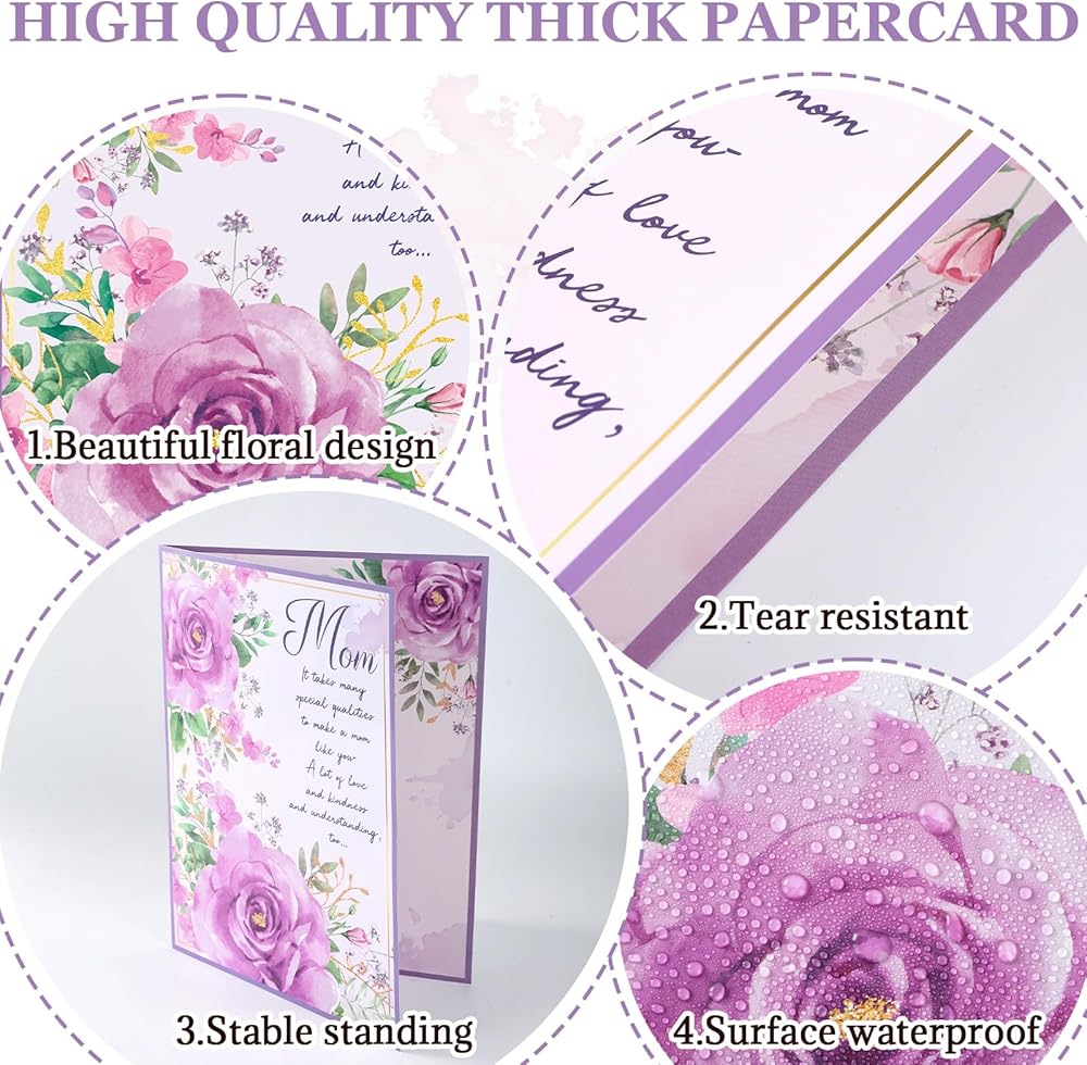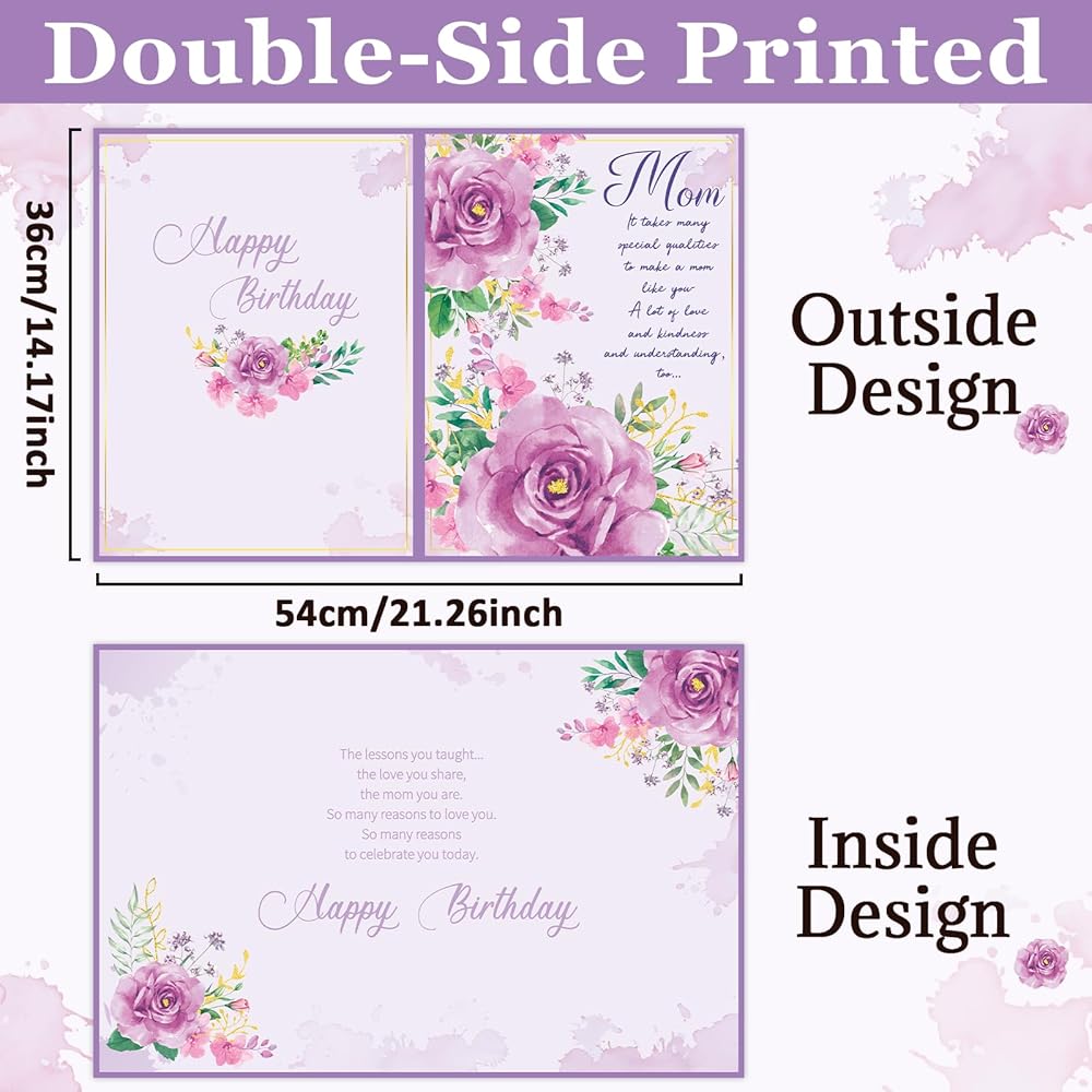 Premium material: These mother birthday card with grateful quotes come in a convenient size of 14x 21.26inch/ 36 x 54 cm. They are made of premium quality card stock and feature a laminated PET film layer, ensuring birthday gift card from daughter's ideal and durability for use. It gives this greetings mother birthday card a unique display when in standing position and to be used for a memorable keepsake for mom, which is wonderful greeting card for sister daughter.