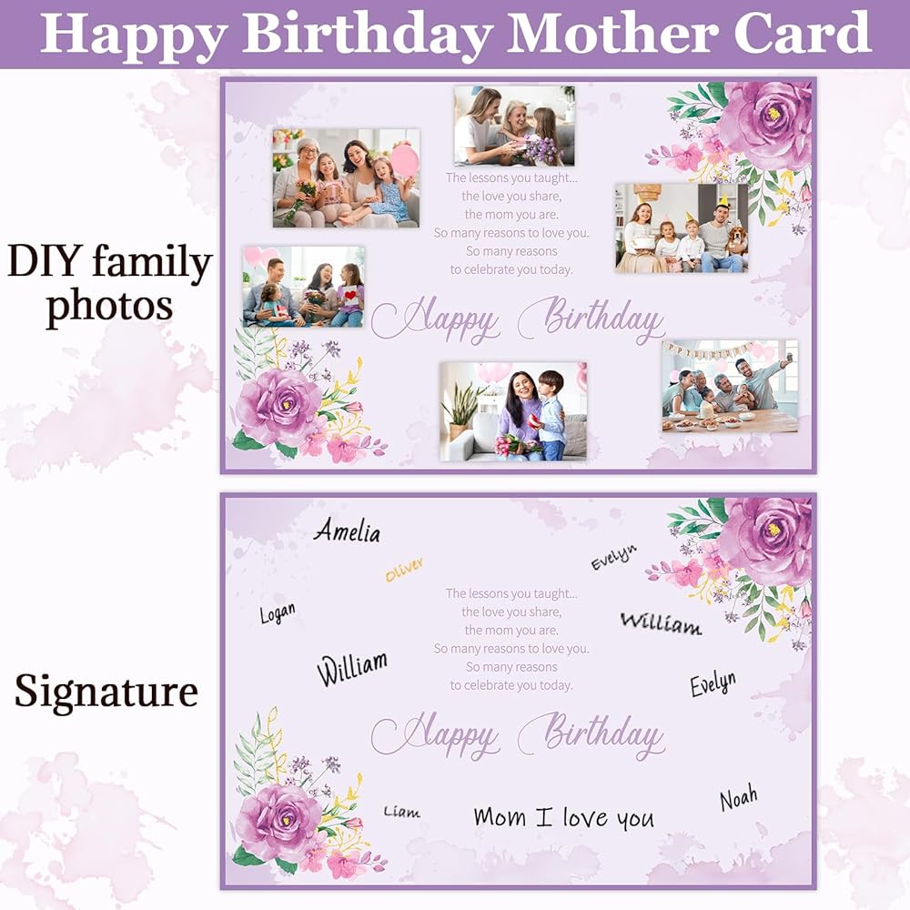 Extensive usages:Mother birthdays gift card is a great way to send a quick note to mom and family to brighten up their day and express your love. You can also use this card as a photo prop to take beautiful and memorable photos with your mom and families. The birthday gift card from son can also be used to collect the signatures of all friends, family and neighbors, which has a certain commemorative value.