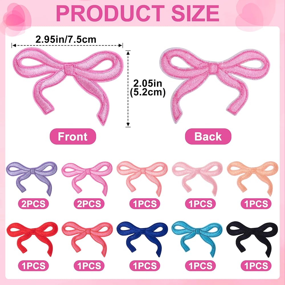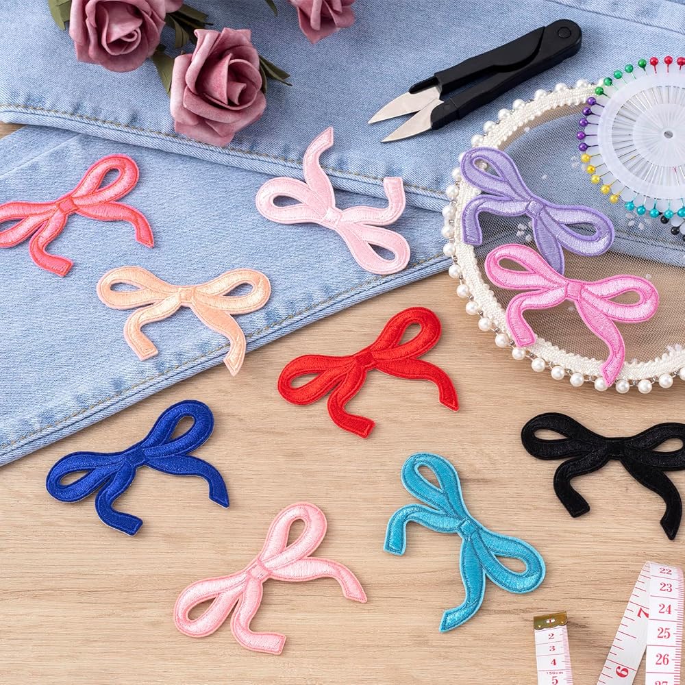 Deozu 12 Pcs Bow Iron on Patches, Bowknot Embroidered Repair Patch, Multicolor Sew on Bow Fabric Patches for Jackets, Coat, Hats, Bags Clothing, DIY (10 Styles)
