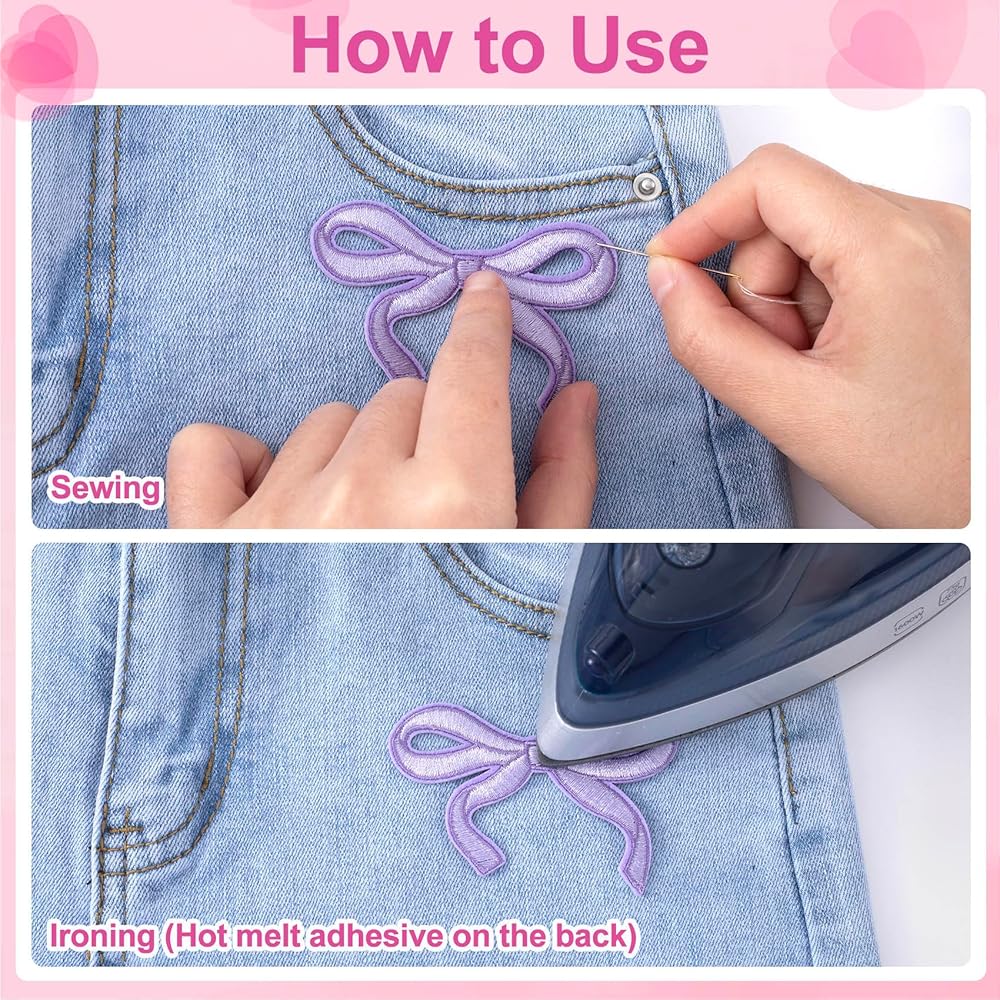 Easy to Apply: Our bow fabric patches have a hot melt adhesive design on the back, just set your iron to 100-150 degrees and iron for 10-30 seconds. You can also sew them directly onto the desired item, which will make them more secure
