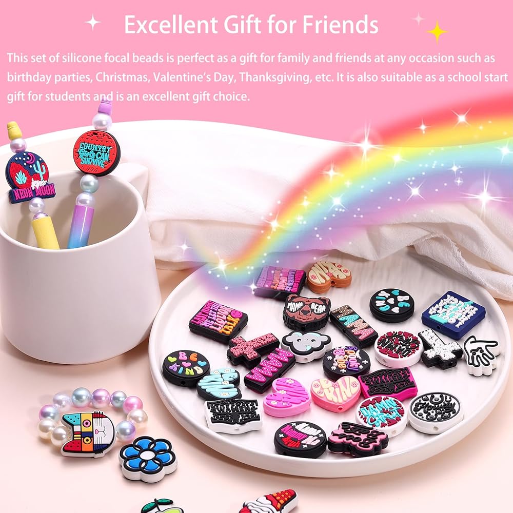 Excellent Gift -- This set of silicone focal beads is perfect as a gift for family and friends at any occasion such as birthday parties, Christmas, Valentine's Day, Thanksgiving, etc. It is also suitable as a school start gift for students and is an excellent gift choice.