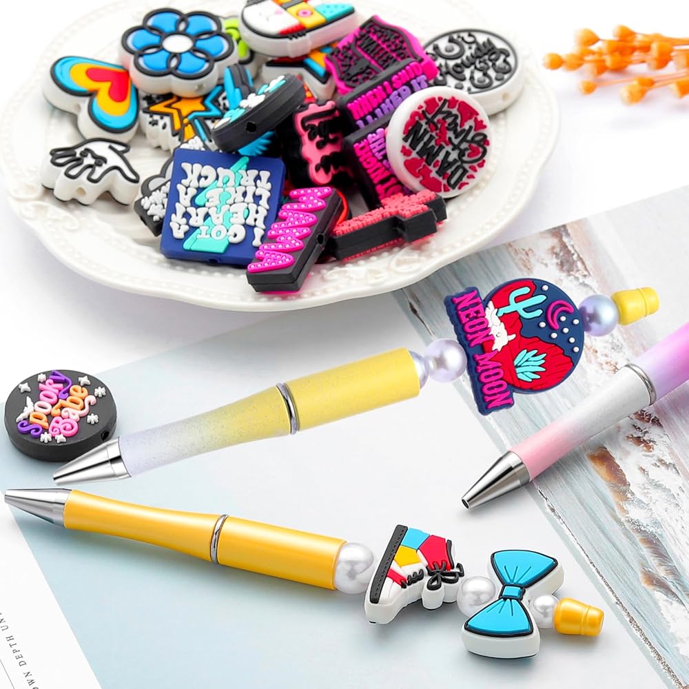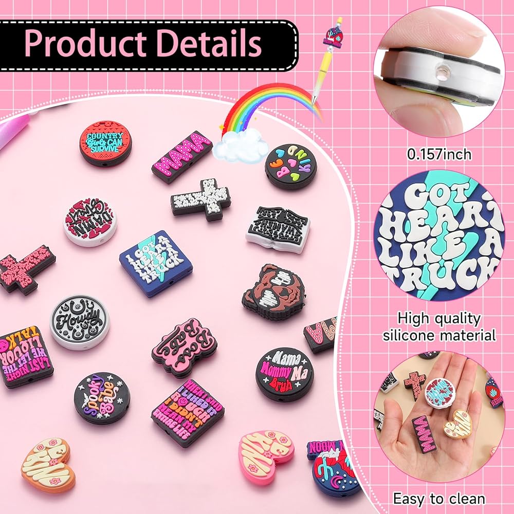 Unique and Innovative Design -- This silicone pen beads design includes cross, heart, circular patterns and many inspirational phrases on top. The diverse style of elements allows you to enjoy the fun of DIY craftsmanship and learning together.