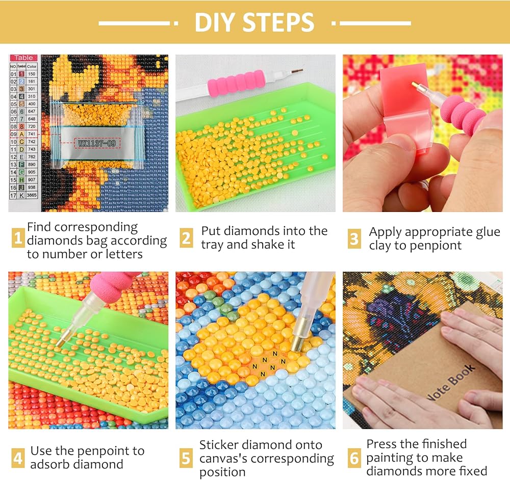 Easy to Learn: Flower diamond art kits are simple to use, making them accessible for people of all ages and skill levels, even those without any crafting experience