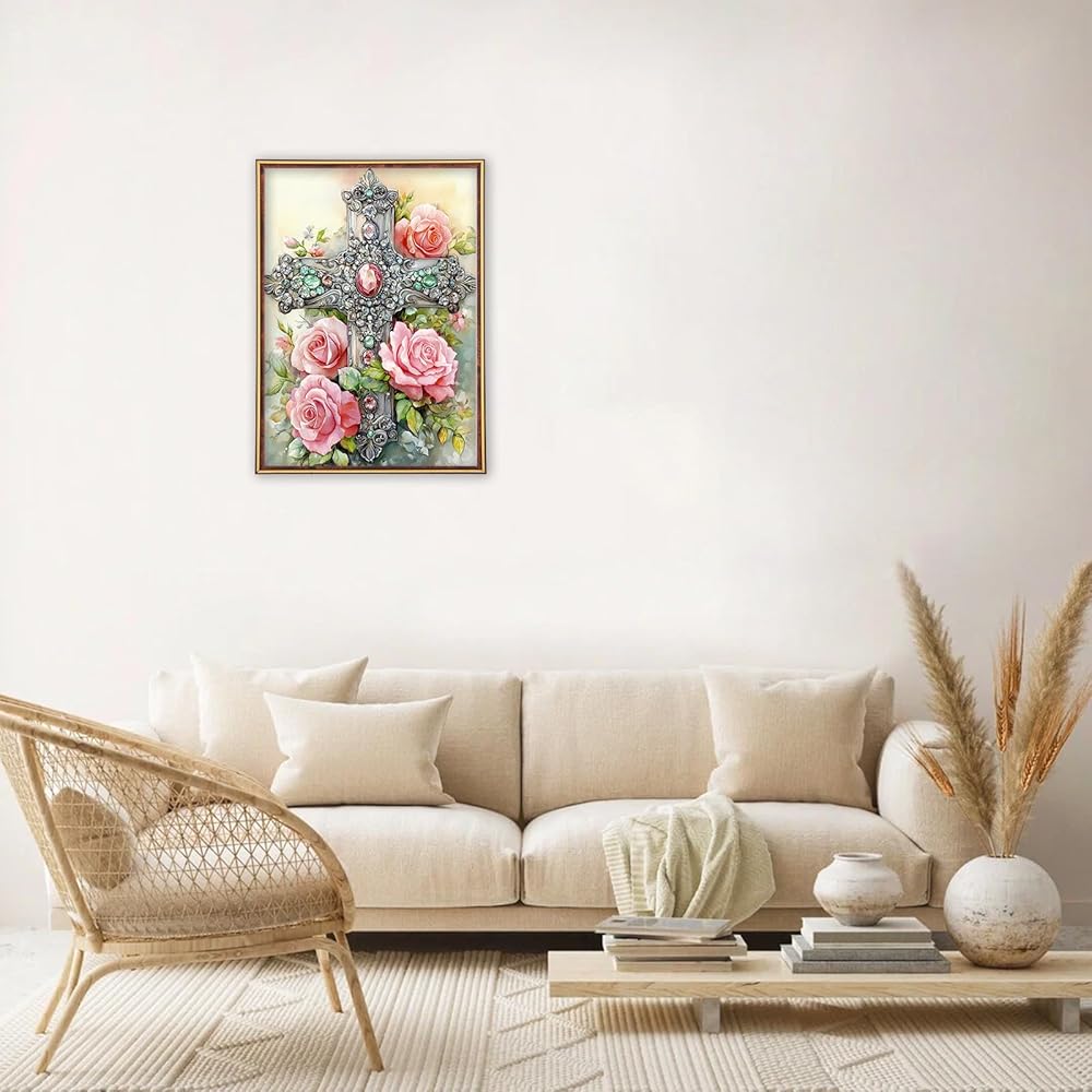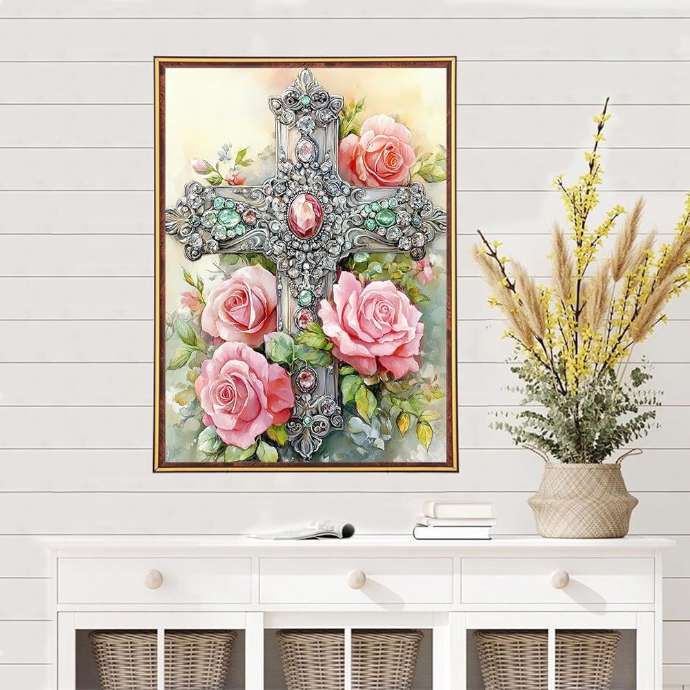 MEIYUDA Diamond Painting Kits for Adults, DIY Cross Diamond Art Kits for Beginners, 5D Flowers Diamond Art Painting Kit Gem Art Crystal for Home Wall Decor and Holiday Presents 12x16Inch