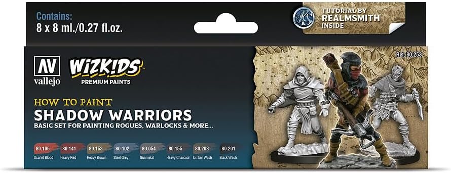 Vallejo - Wizkids | Shadow Warriors | Modeling Wargames Premium Paints Set | Ideal for your Adventurers Featuring a Variety of Leather and Natural Colors | Contains 8 Bottles x 8 ml. (0.27 fl.oz.)