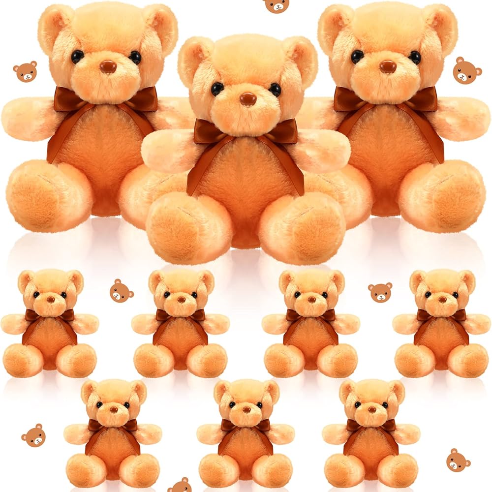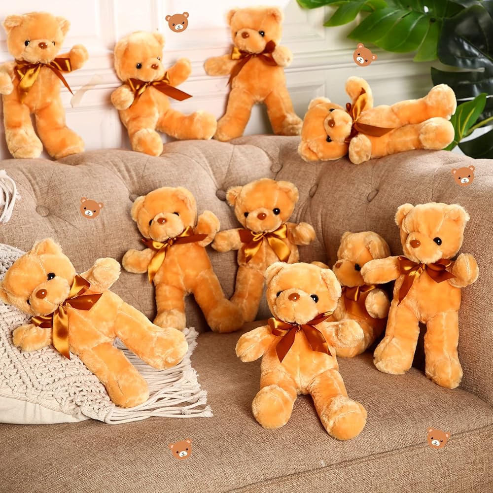Package includes: this bear stuffed animal set include 10 plush bear doll toys with different colors; The soft plush and floppy body with exquisite facial features make this a cuddly companion