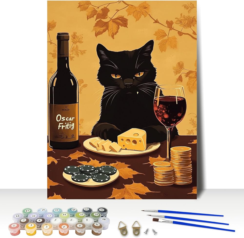 MAXBYE Funny Cats Paint by Numbers Kits for Adults Beginners, Black Cat Poker Night Paint by Number for Adults,Easy Canvas Paint by Numbers for Home Wall Decoration and Gifts 12x16inch