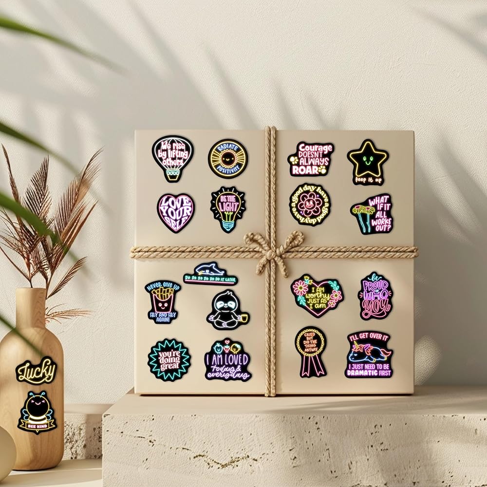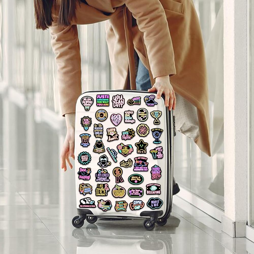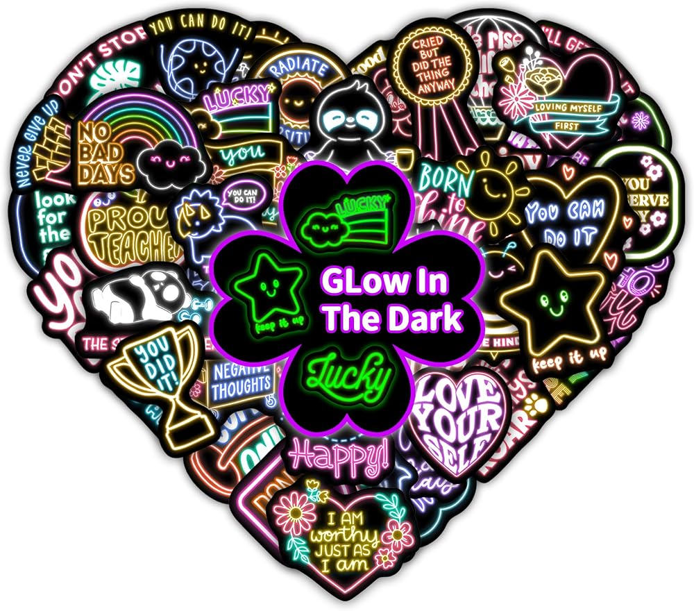50 Pcs Glow in The Dark Neon Inspirational Quotes Kids Stickers for Water Bottle, Cute Waterproof Vinyl Positive Motivational Phrases Laptop Decals, Boys Girls Skateboard Phone Case Decorations