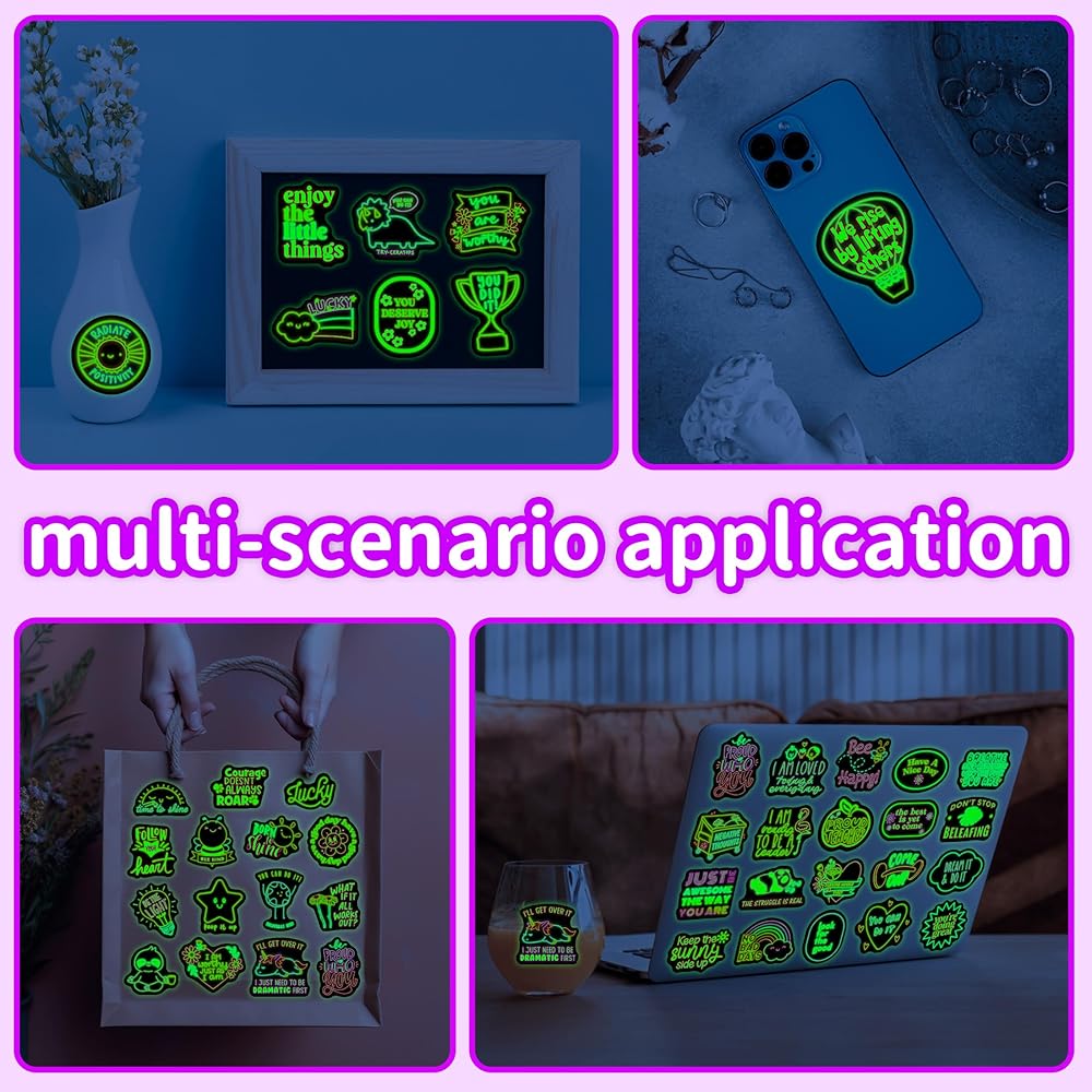 【GLOW IN THE DARK】When the stickers absorb sunlight or artificial light for 15-30 minutes, the stickers will glow in a dark environment. The longer the light is absorbed, the longer it glows.
