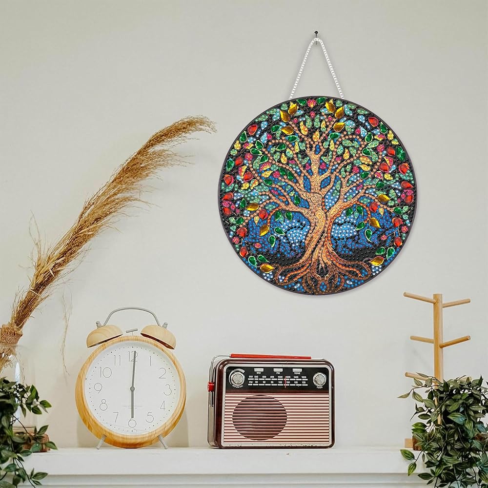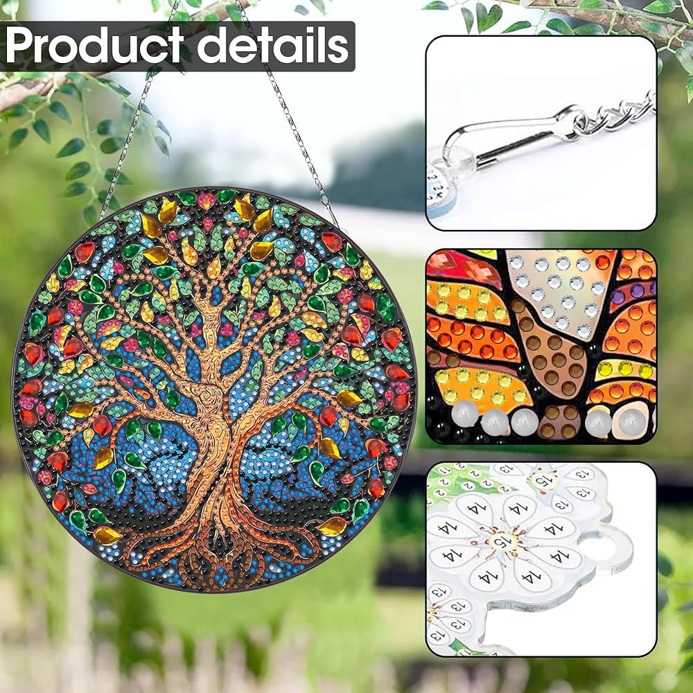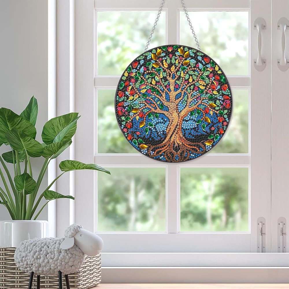 SKRYUIE Tree Hanging Diamond Art Kits for Adults Pendant Suncatcher, Special Shaped Crystal DIY Pearl Diamond Painting Kit, Gift for Mother Spring Summer Window Wreath Decor 7.64 x 7.64 Inch A16