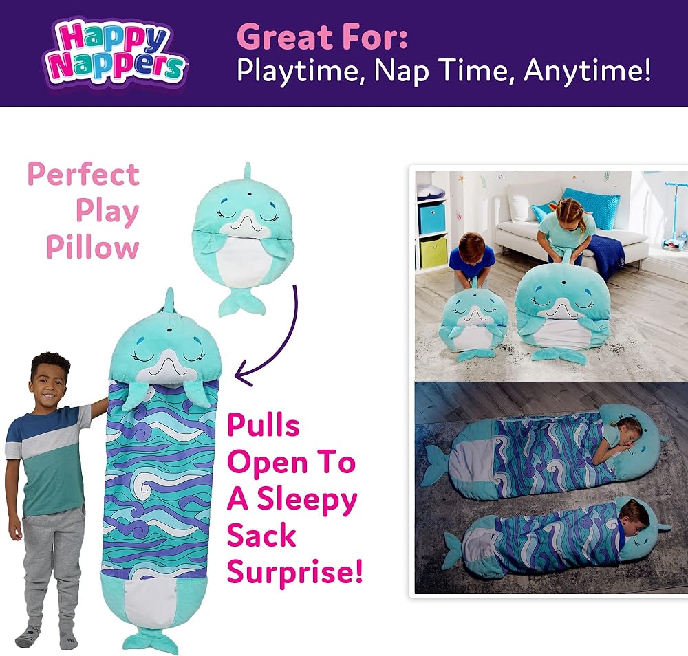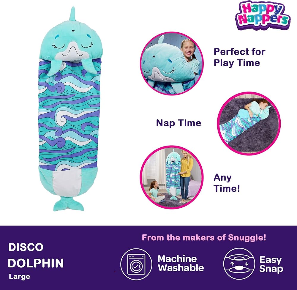 Happy Nappers: Pillow & Sleepy Sack: Large - Dolphin Disco - 66 x 30, 2-in-1: Plush Animal Opens to Sleeping Bag, Soft Play & Nap Character, Kids 3+