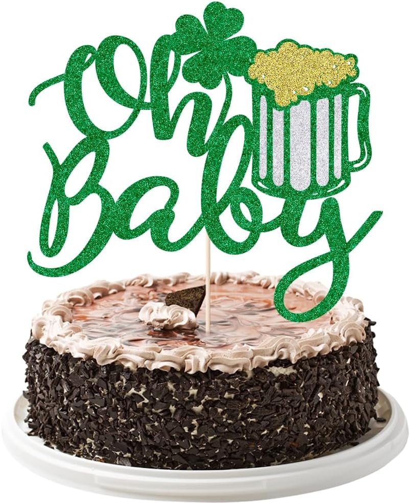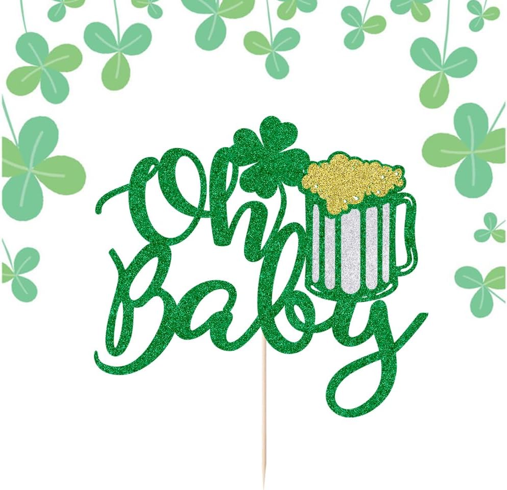 Oh Baby St. Patrick's Day Cake Toppers Lucky Four Leaf Shamrock Baby shower Cupcake Picks For Irish Festival Baby Shower Birthday Party Supplies Decoration