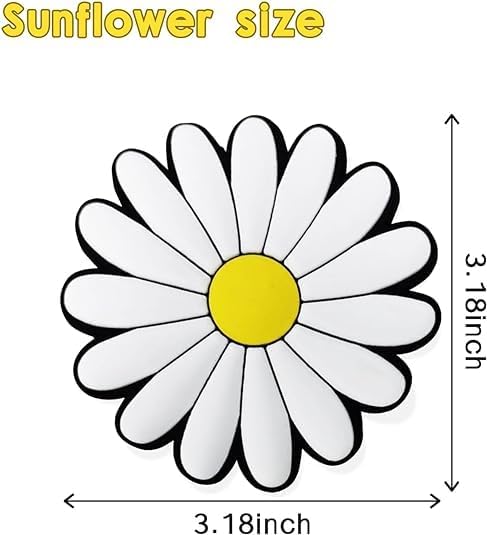 You will receive 3 cute daisy flower charms for bogg bags. Each charm measures 3 inches on the longest side, making them the perfect size to complement your bag.