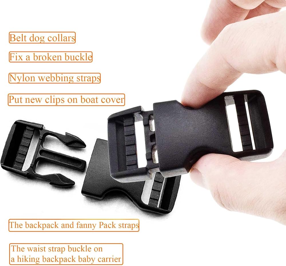 Multi-function: Perfect quick-release buckles for 1-inch nylon webbing straps, for putting new clips.Great for replacing the piece on the backpack and fanny Pack straps and belt dog collars.Good locking buckles for fixing a broken buckle. Also, they can replace the waist strap buckle on a hiking backpack baby carrier. Stronger than the original!
