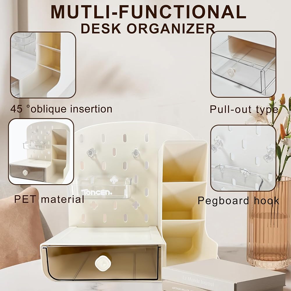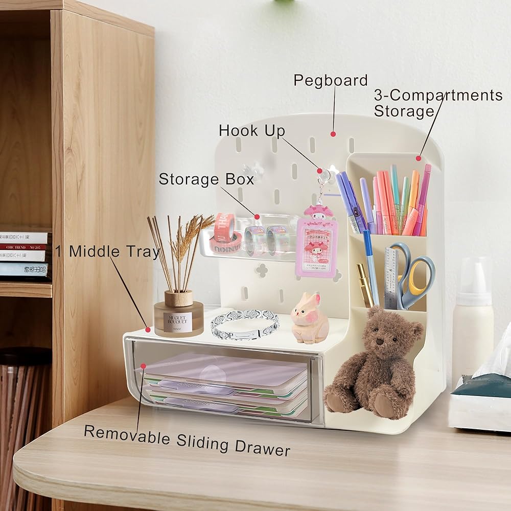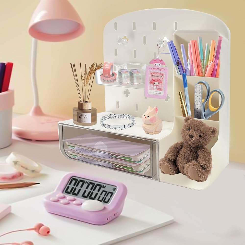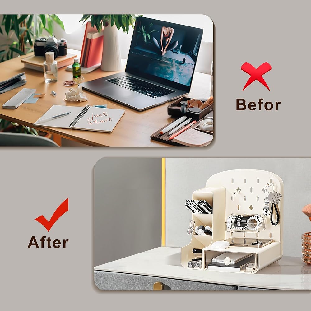MULTIFUNCTIONAL DESK PEGBOARD:The small desktop storage rack can meet the storage needs of office desks and home office desks, and can also meet the storage needs of small desktop items. It can be used as a learning gift for children on Teacher's Day, Thanksgiving, and Christmas