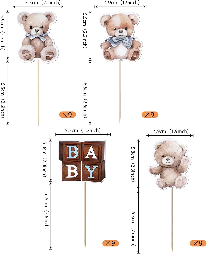 Package includes40 pcs cupcake toppers, 8 patterns, 5 pcs of each pattern.The size is W 2.3 inch * 4.1 inch / 2.9 inch * 4.8 inch / 2.0 inch * 4.2 inch / 2.2 inch * 4.2 inch / 2.0 inch * 4.6 inch / 1.5 inch * 4.7 inch ( with stick).