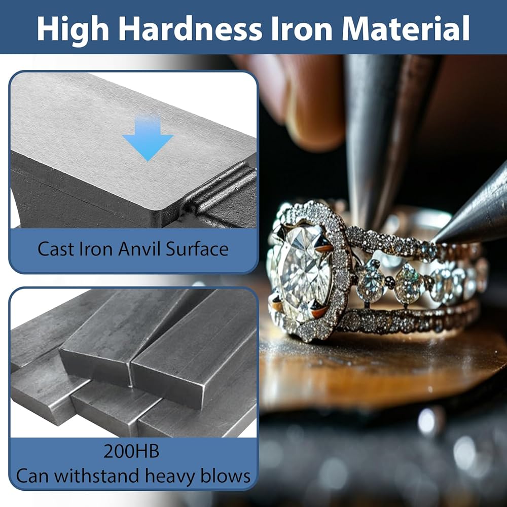 【Large Countertop Design】Our 22 lbs (10 kg) cast iron anvil features a work surface measuring 6.69 x 3.54 inches, providing ample space for various projects. The table is wide and flat, ensuring a smooth and stable striking surface ideal for precision work.