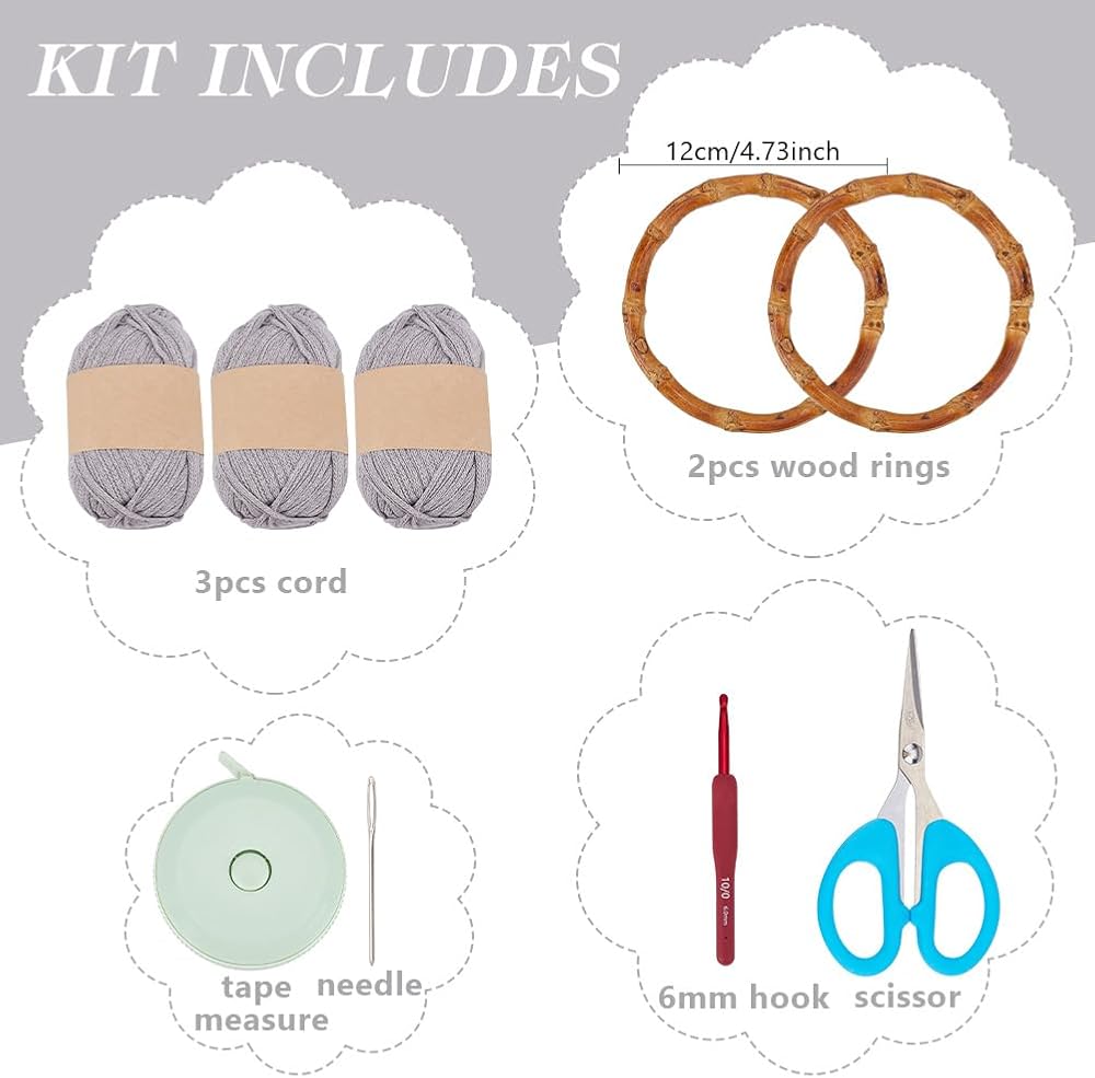 ACRNIGHEET Crochet Bag Kit for Adults Grey Handbag Crochet Kit for Beginners Tote Bag Starters Set DIY Craft Making Kit with Step-by-Step Instructions and Video Guidance