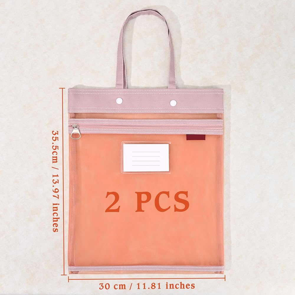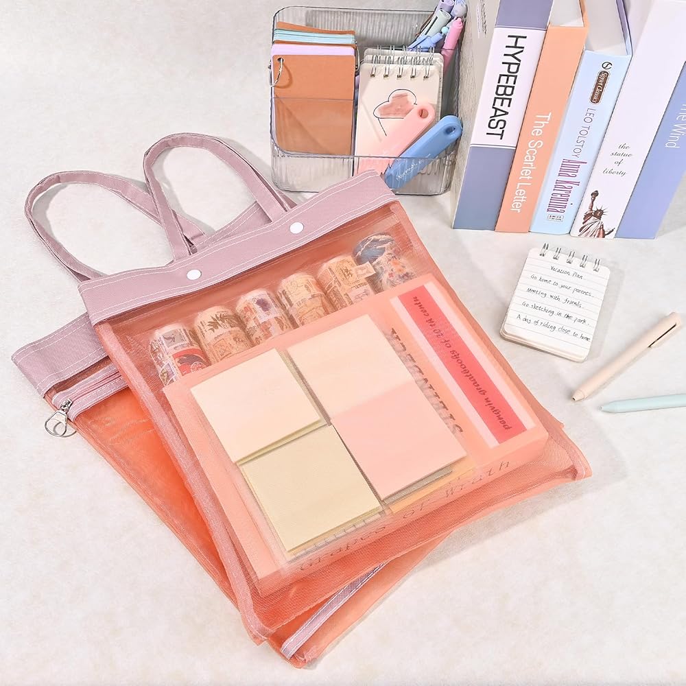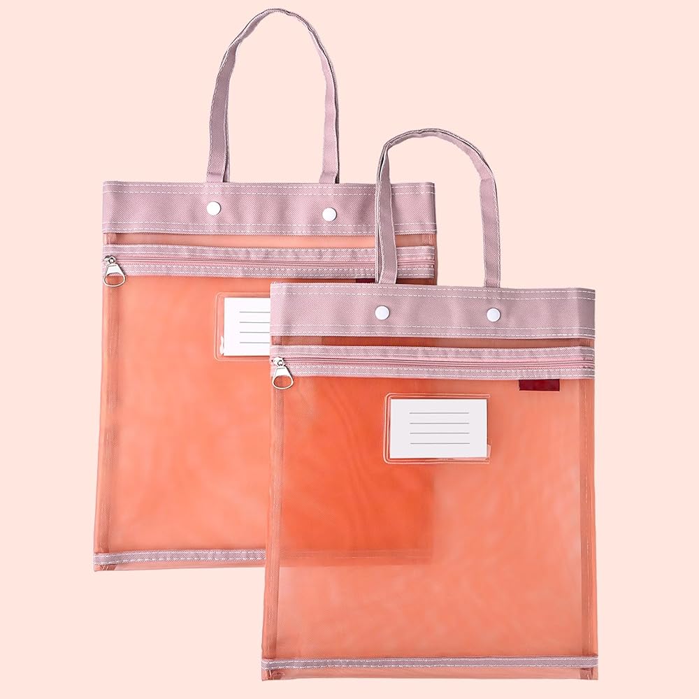 Visible Document Bag with Handle: This clear mesh file tote is a bit stiff, but supports documents as a result. The snap closure and semi-transparent design allows you to keep an eye on what's in it, for quick access and easy retrieval