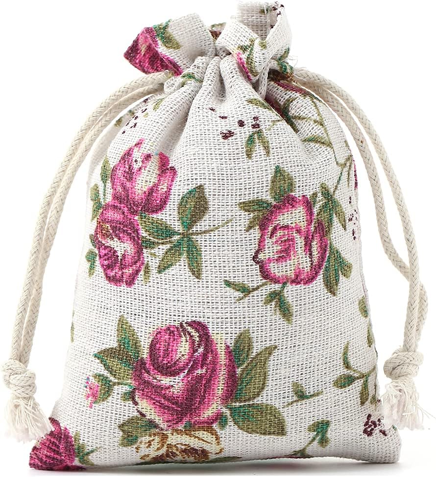 Size: 4x6 inches / 10 x14cm Packing: 50 Pcs Burlap Bags Color: Mini Flower.